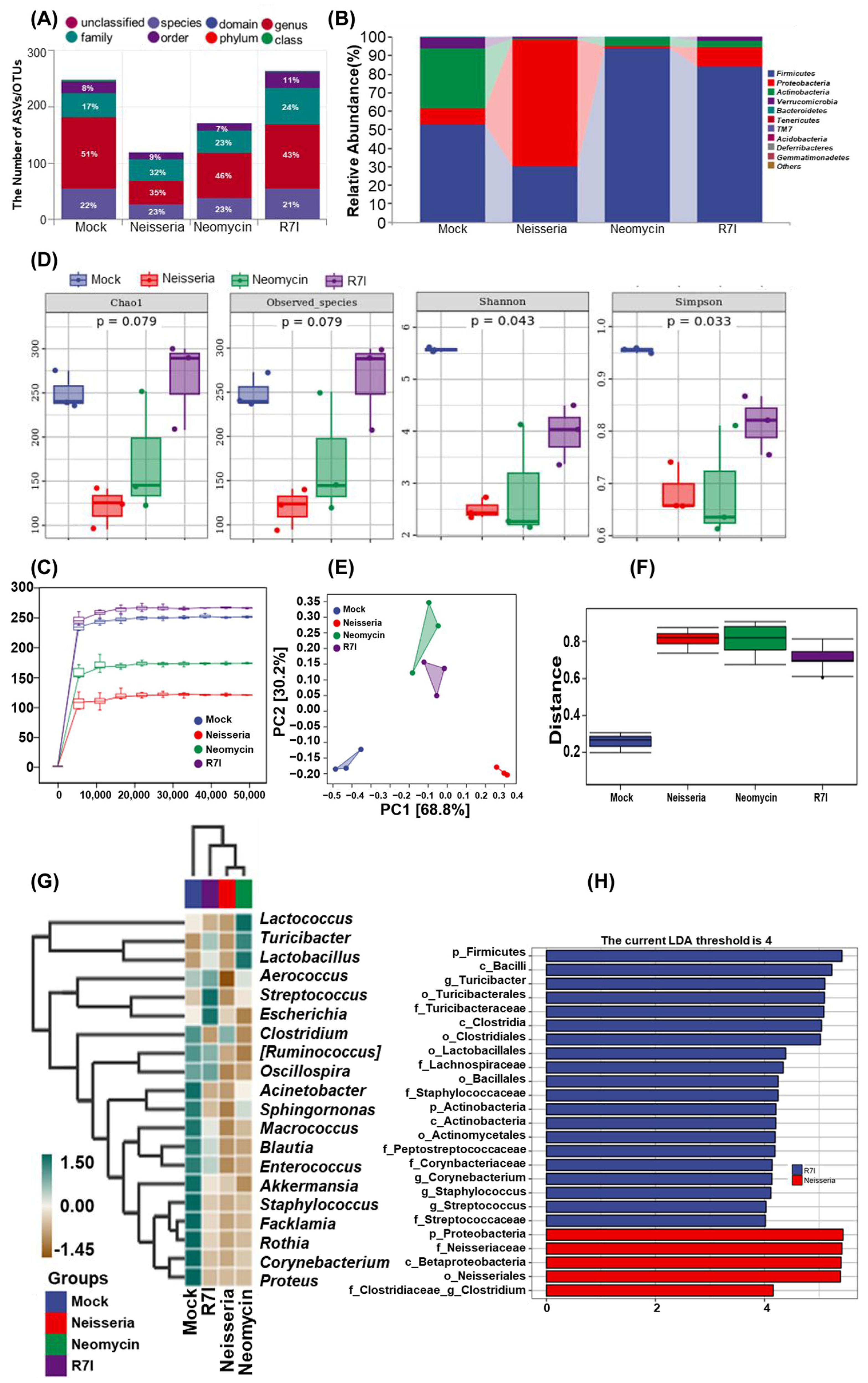 3.6. R7I Regulates Neisseria-Induced Dysbiosis of the Gut Microbiota