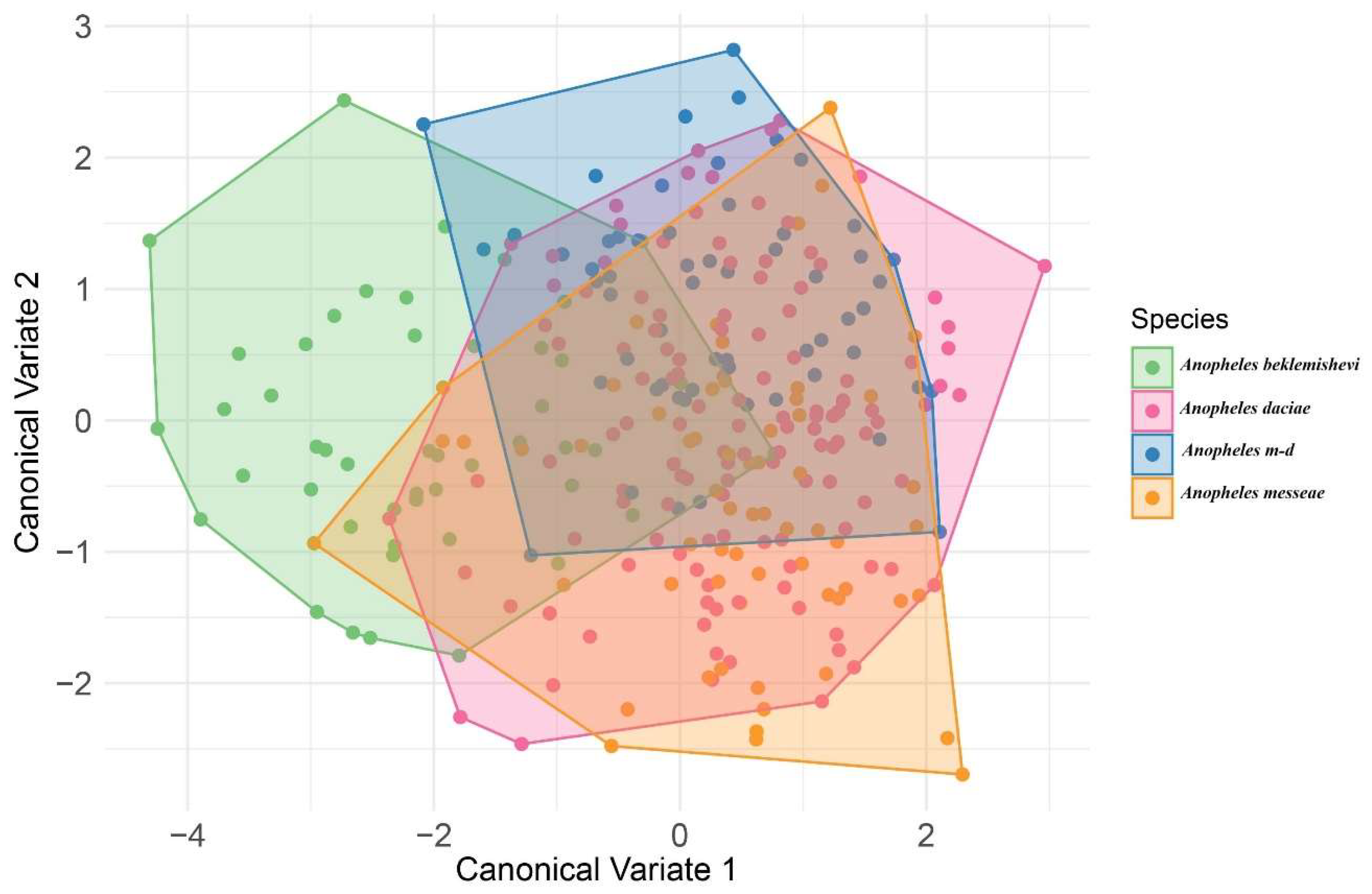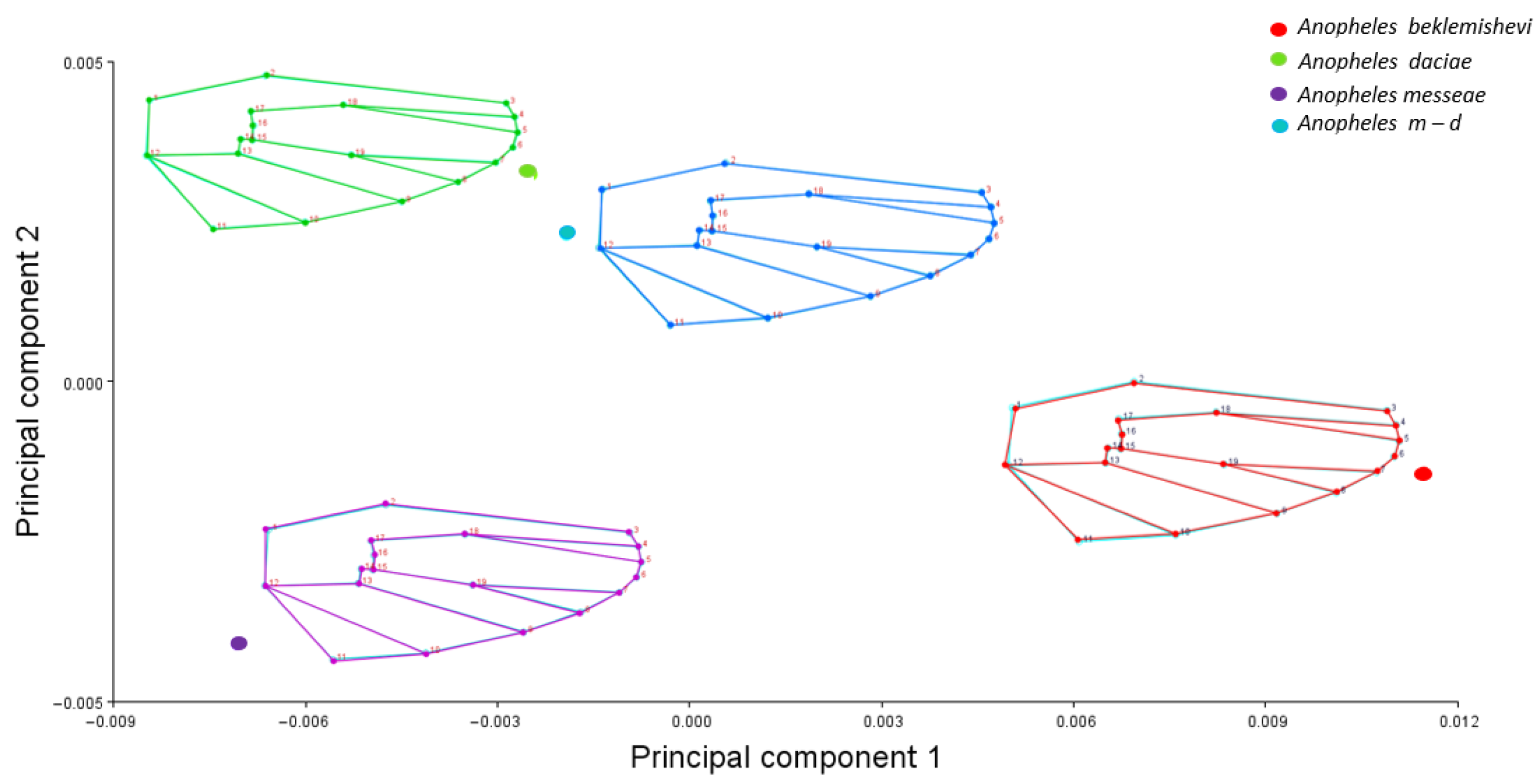 Calderon, X.; Artemov, G.; Burlak, V.A.; Alexeeva, S.; Hernández-P, R.; Suazo, M.J.; Pérez, L.M.; Benítez, H.A.; Correa, M. Unraveling Wing Shape Variation in Malaria Mosquitoes from the Arctic Edge: A Geometric Morphometric Study in Western Siberia. Animals 2025, 15, 2949. https://doi.org/10.3390/ani15202949