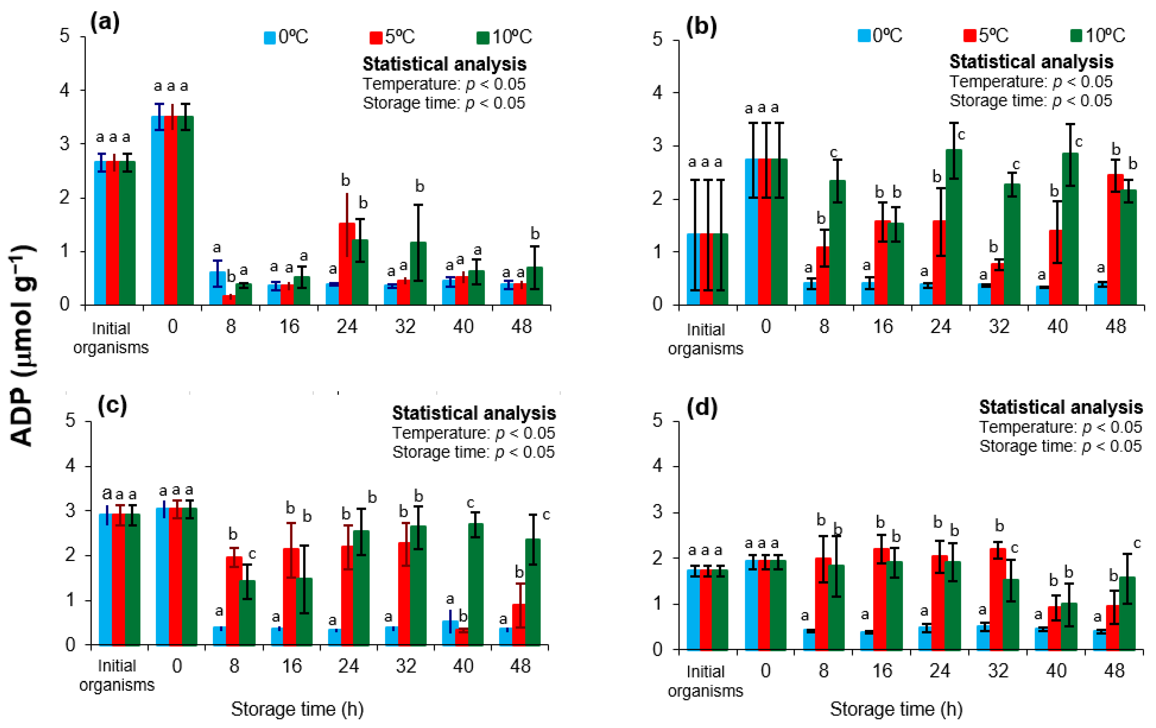 Chicago/Turabian StyleJiménez-Ruiz, Edgar Iván, Víctor Manuel Ocaño-Higuera, María Teresa Sumaya-Martínez, Enrique Márquez-Ríos, Saúl Ruíz-Cruz, Dalila Fernanda Canizales-Rodríguez, Orlando Tortoledo-Ortiz, Alba Mery Garzón-García, José Rogelio Ramos-Enríquez, Santiago Valdez-Hurtado, and et al. 2025. "Energy Processes During Rigor Mortis in the Adductor Muscle of the Lion’s Paw Scallop (Nodipecten subnodosus): Effects of Seasonality and Storage Temperature" Animals 15, no. 20: 2953. https://doi.org/10.3390/ani15202953