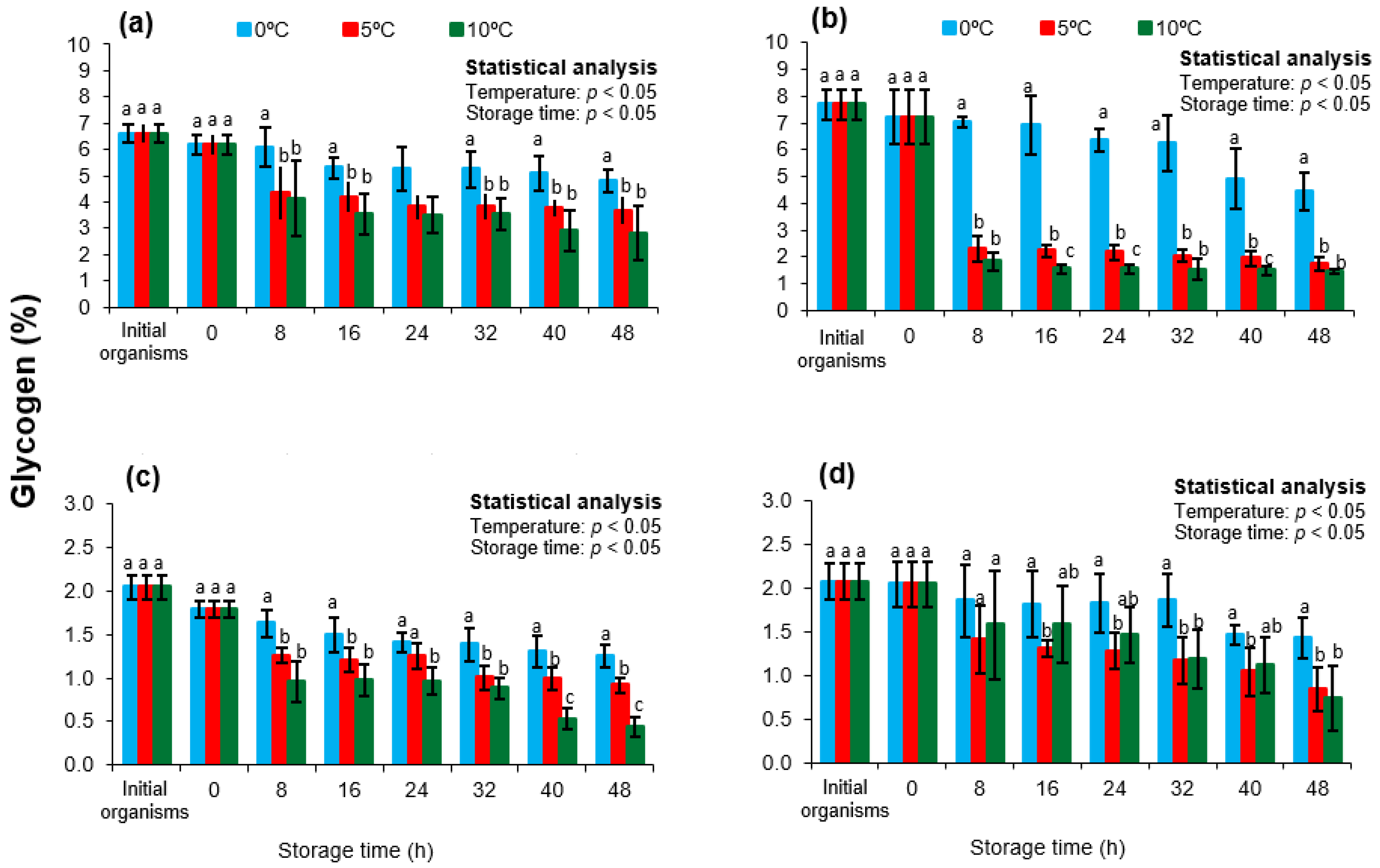- Liu, Y.; Wang, Y.; Wu, T.; Li, X.; Liu, B. Effects of seasonal environmental conditions on energy reserves and postmortem metabolism in bivalves. Aquac. Rep. 2021, 20, 100715. [Google Scholar]