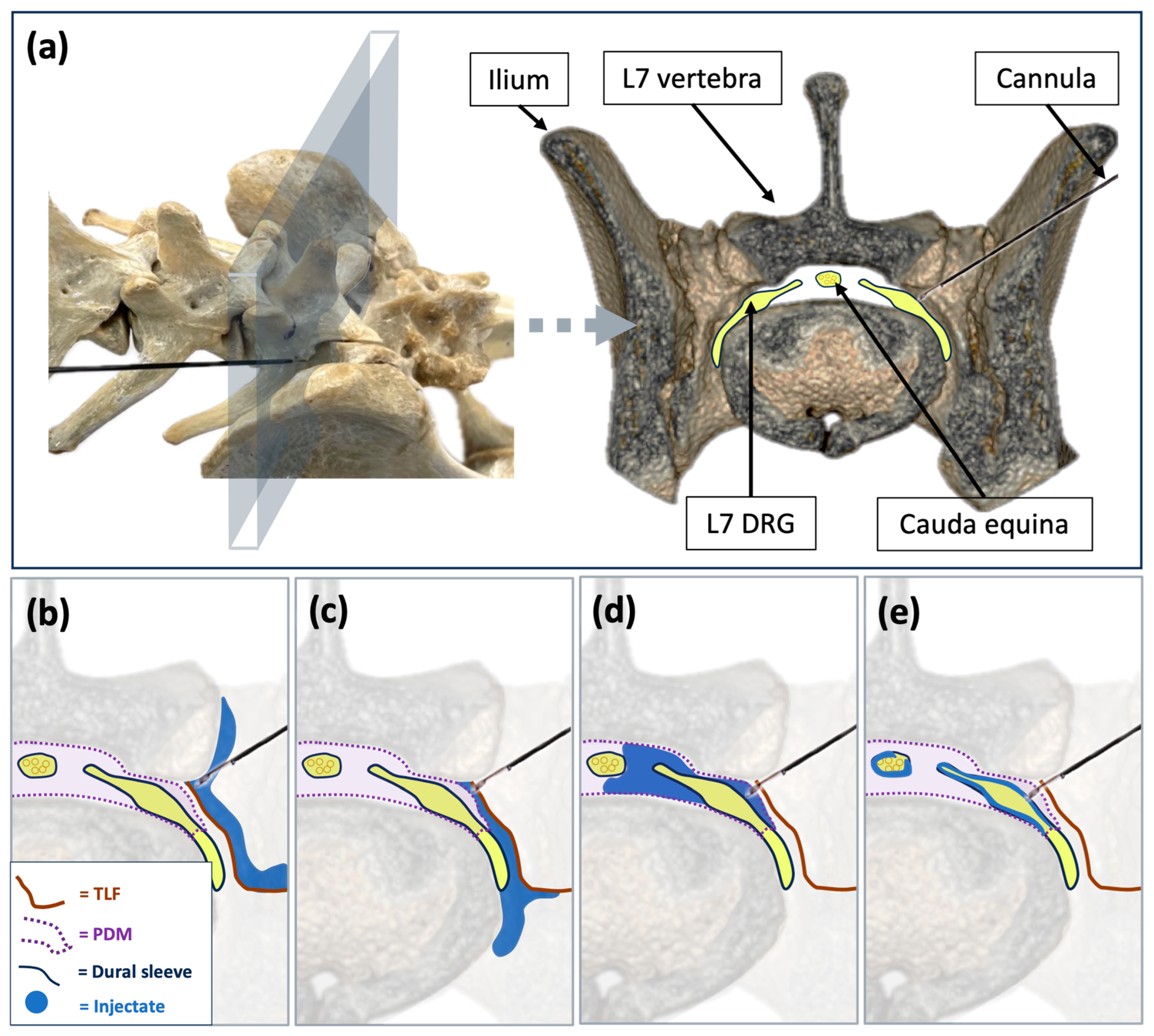 | Assessment Method | Epidural Contrast (n = 10) | Perineural Epidural Stain of L7 at Foraminal Region (n = 10) | Paravertebral Foraminal Contrast (n = 10) | Subarachnoid Contrast (n = 10) | Intravascular Contrast (n = 10) |