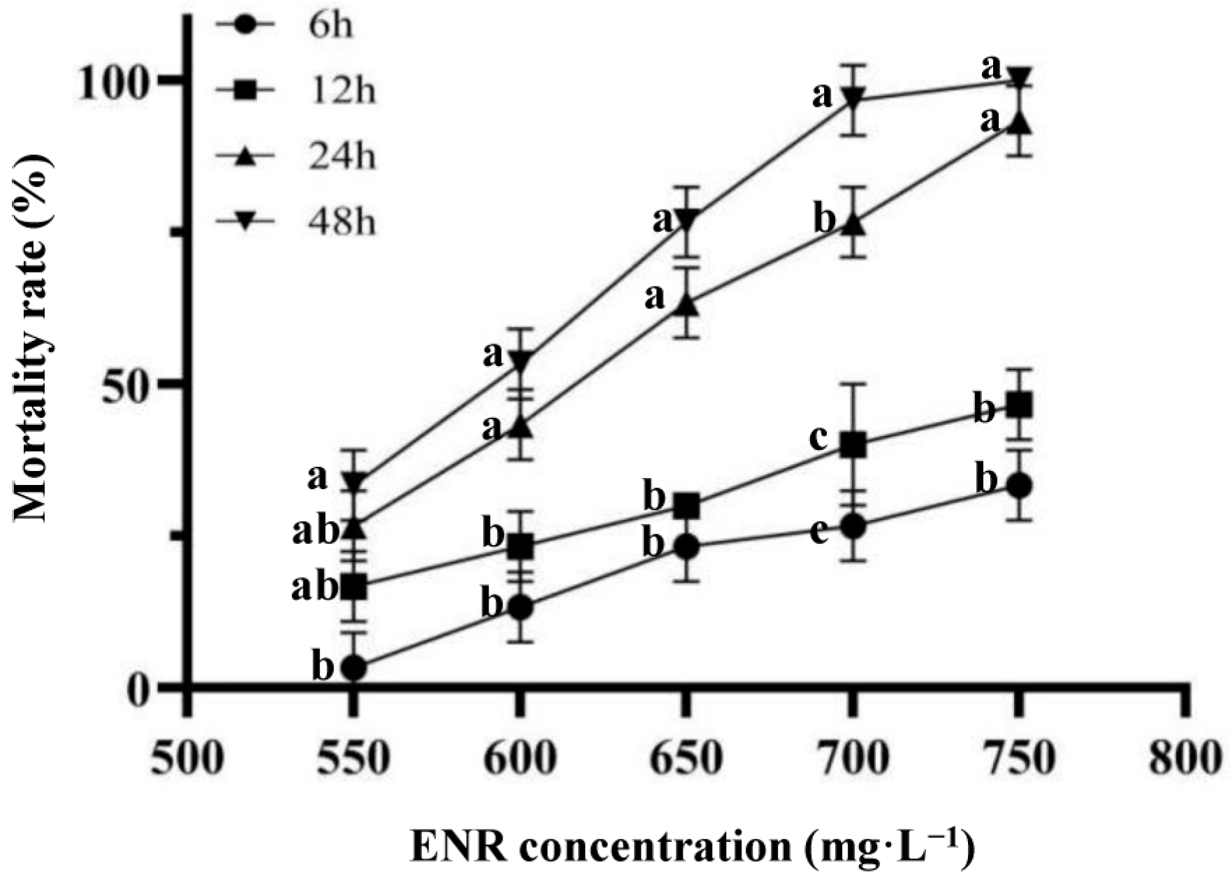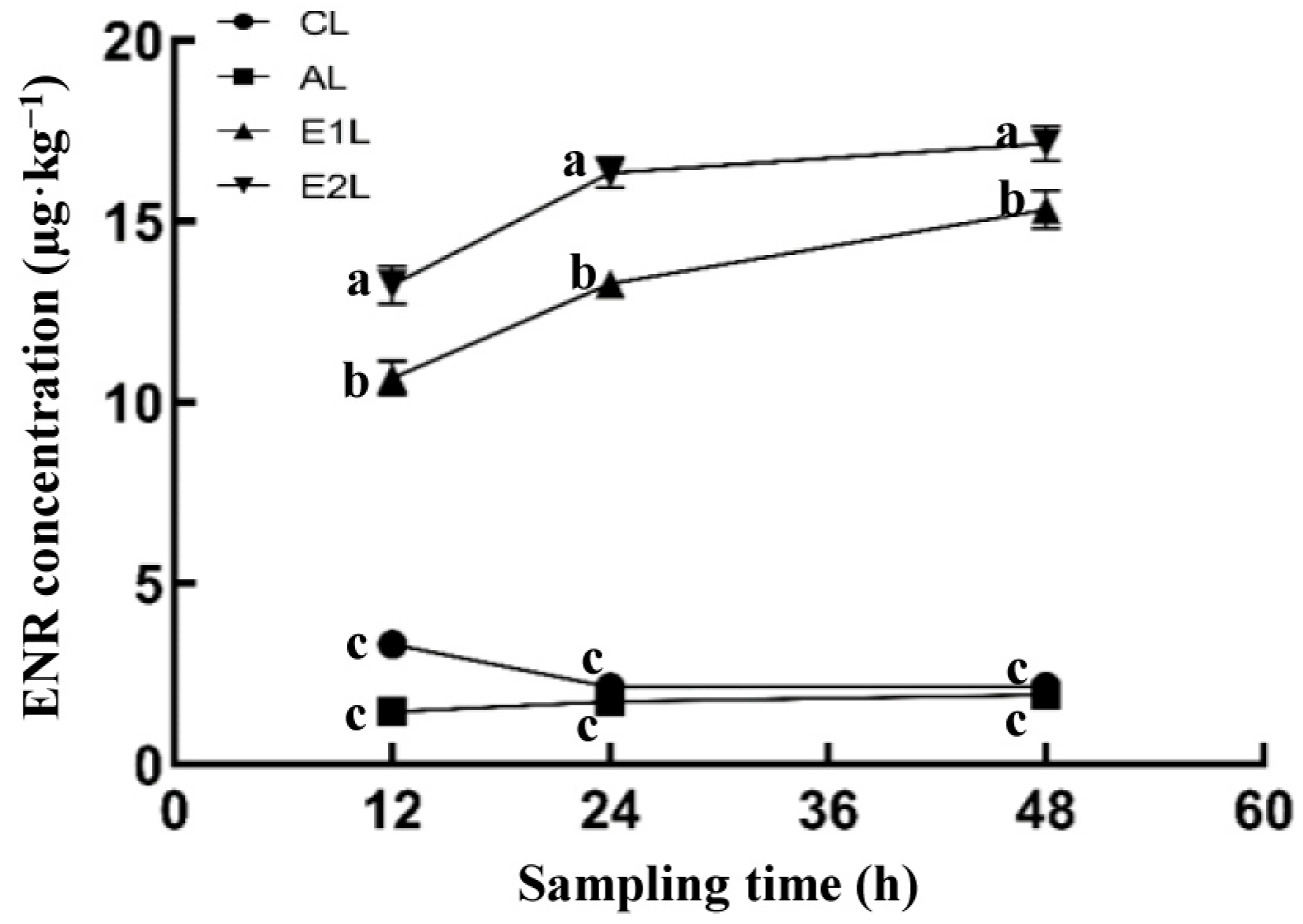 3.3. ENR Residues in Shad Muscle at 12~48 h