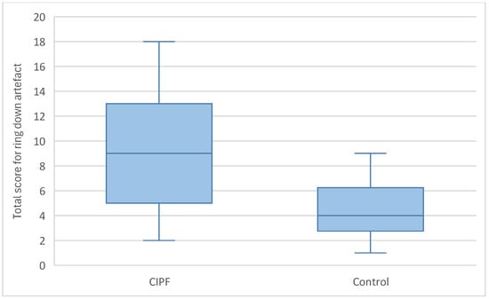 Comparison of the total ring-down artefact scores between CIPF WHWTs and control CIPF.