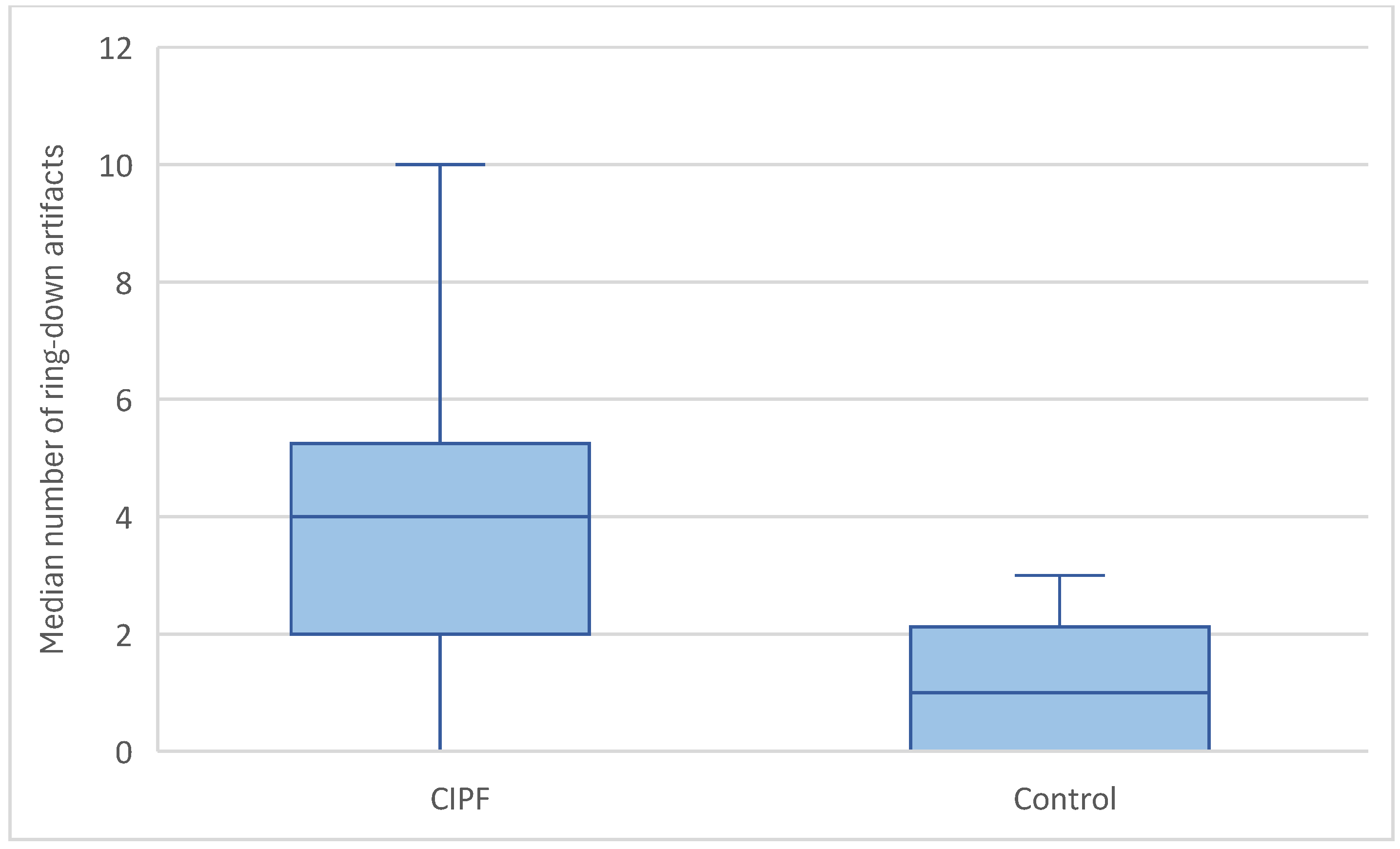 A High Number of Ring-Down Artefacts and an Irregular Pleural Surface Are More Commonly Observed in WHWTs Suffering from Idiopathic Pulmonary Fibrosis Compared to Control WHWTs