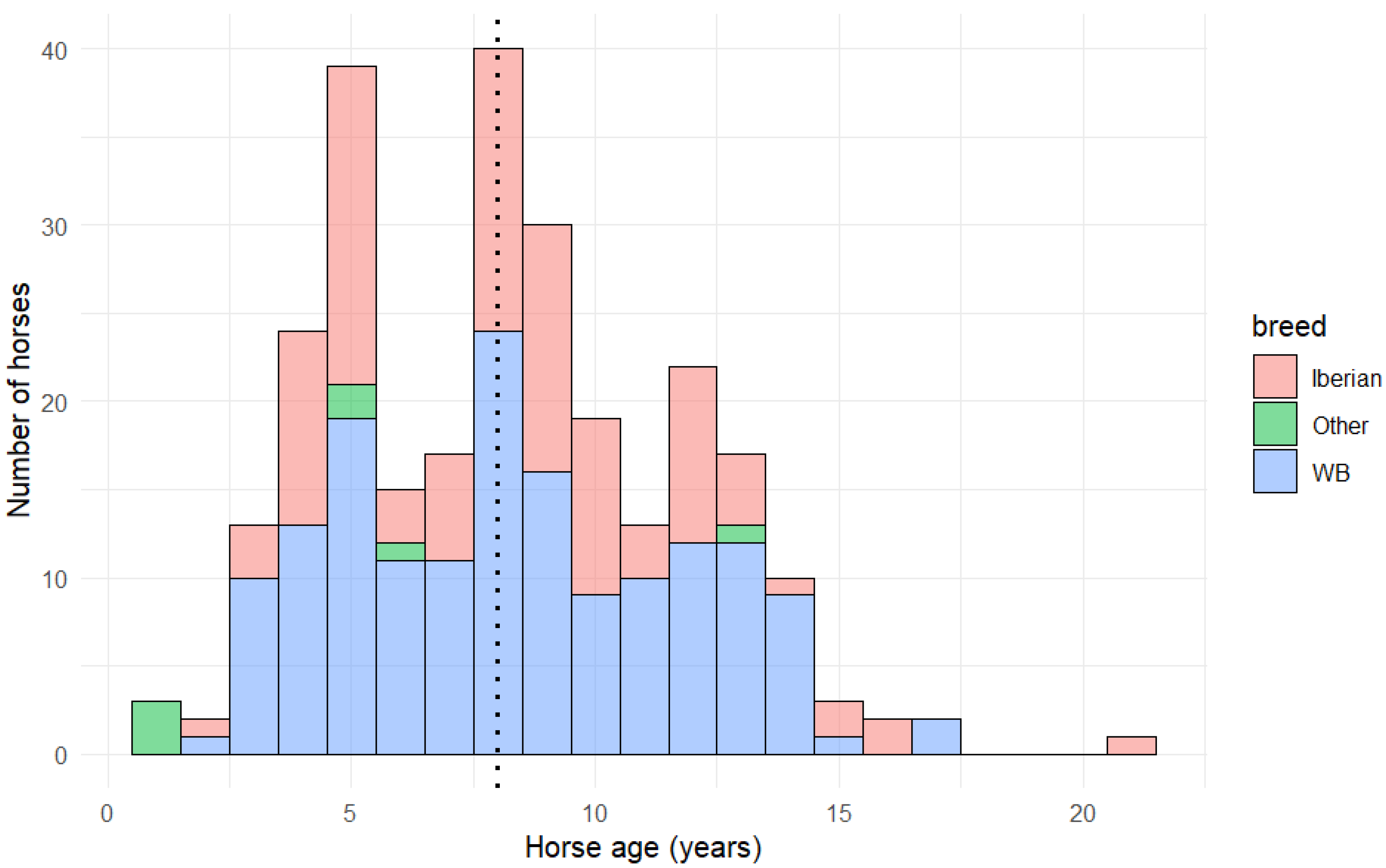 - Ripollés-Lobo, M.; Perdomo-González, D.I.; Azor, P.J.; Valera, M. Evaluation of Potential Effects and Genetic Parameters in Conformational Limb Defects in Pura Raza Española Horses. Ital. J. Anim. Sci. 2023, 22, 407–417. [Google Scholar] [CrossRef]