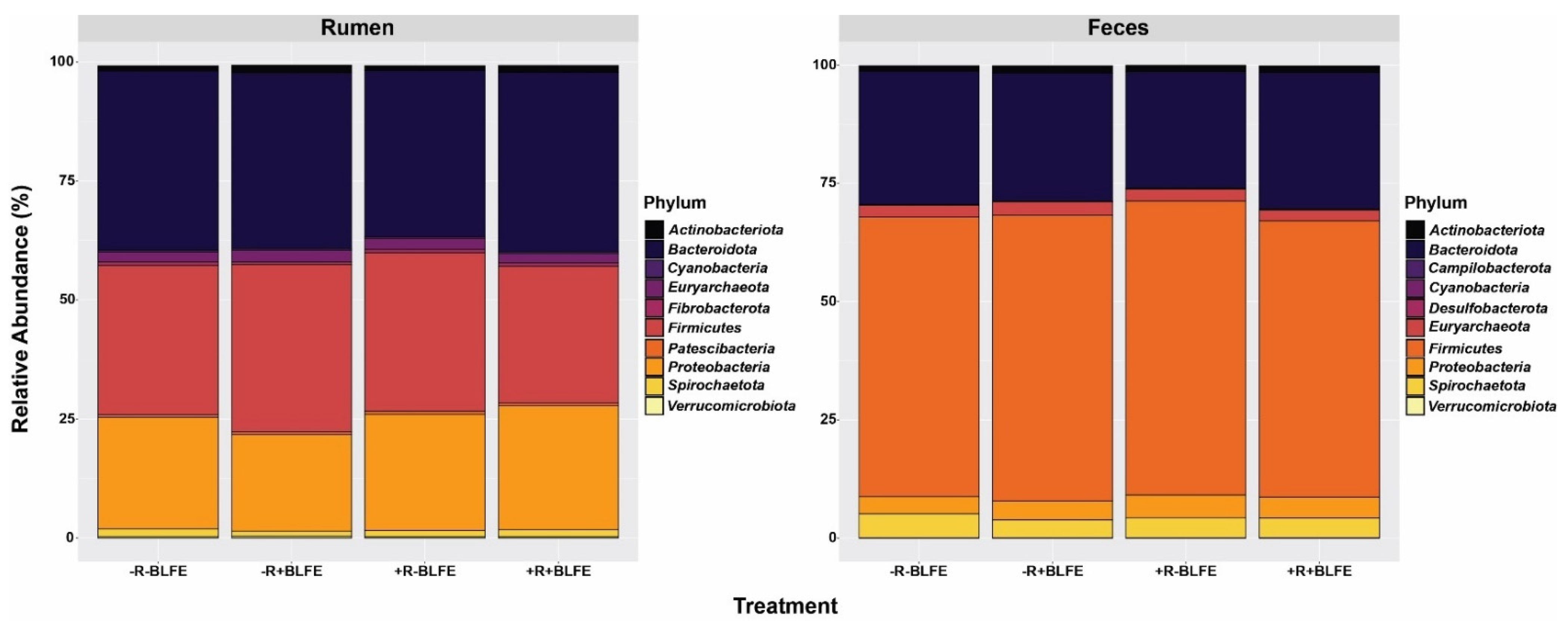 3.6. Correlations Between Ruminal and Fecal Genera Abundances and Feed Efficiency