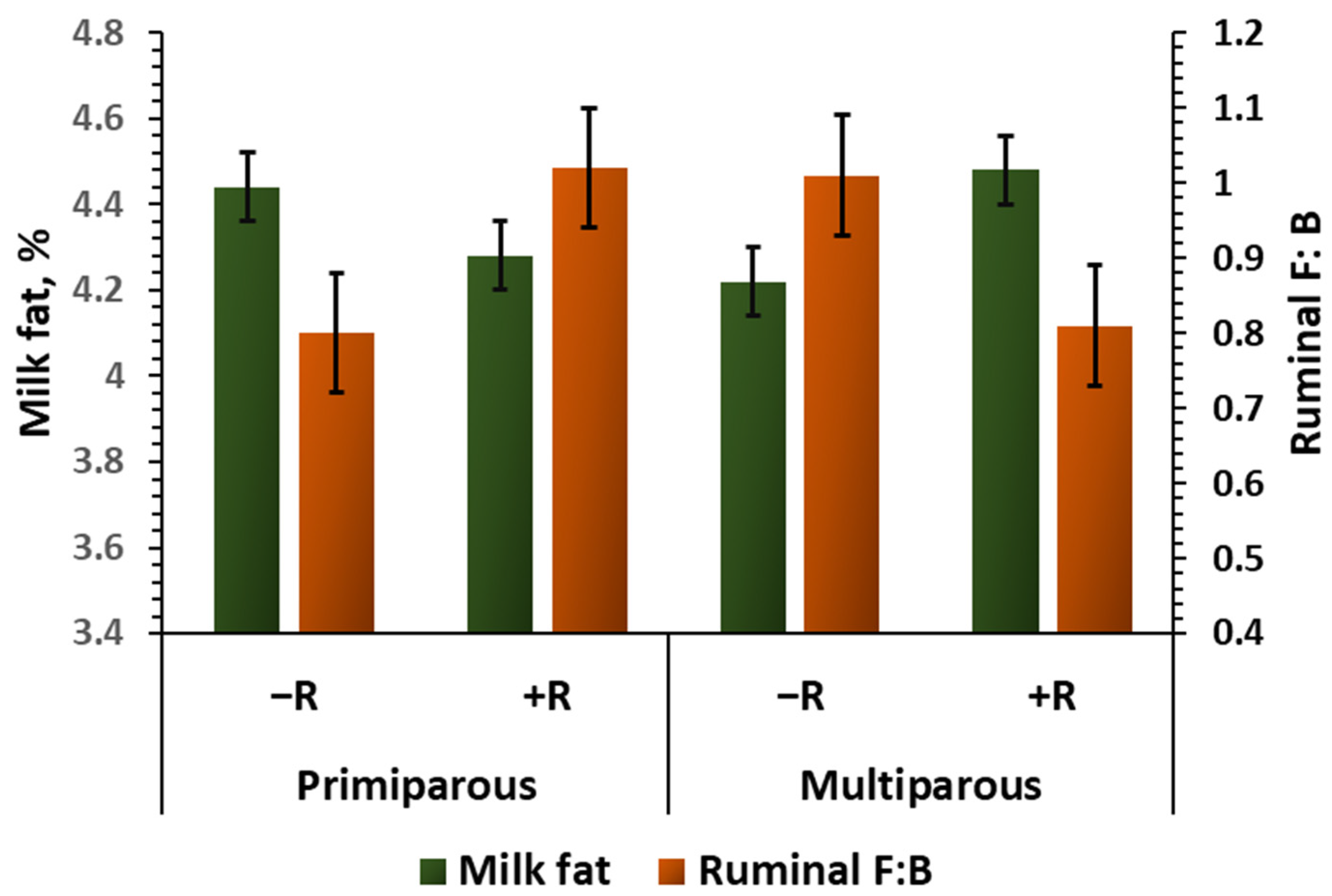 Milk fat, % | 4.33 | 4.26 | 4.46 | 4.37 | 0.07 | 0.09 | 0.27 | 0.95 |