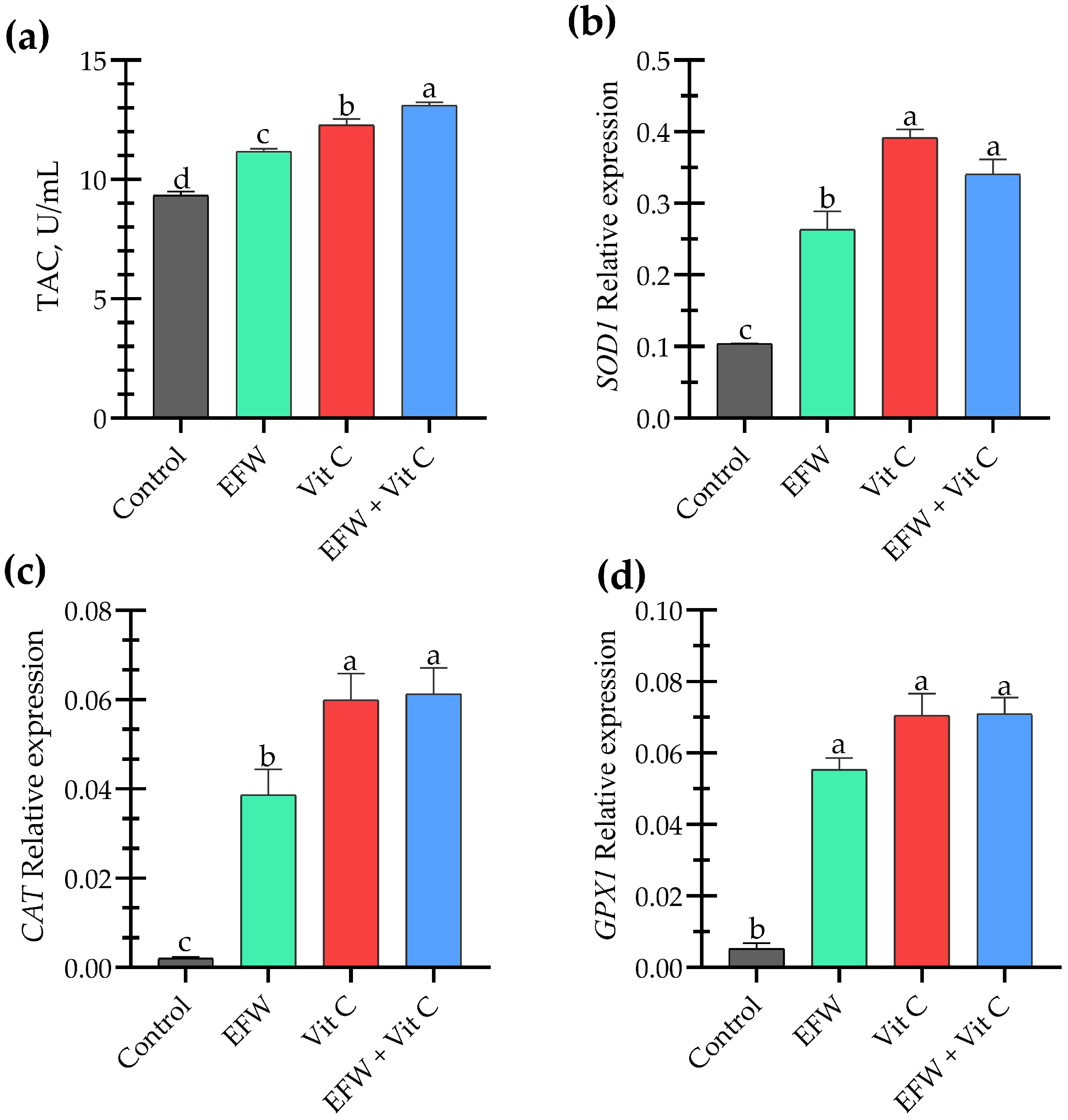 | Parameters | Control | EFW | Vit C | EFW + Vit C | SEM | p-Value |