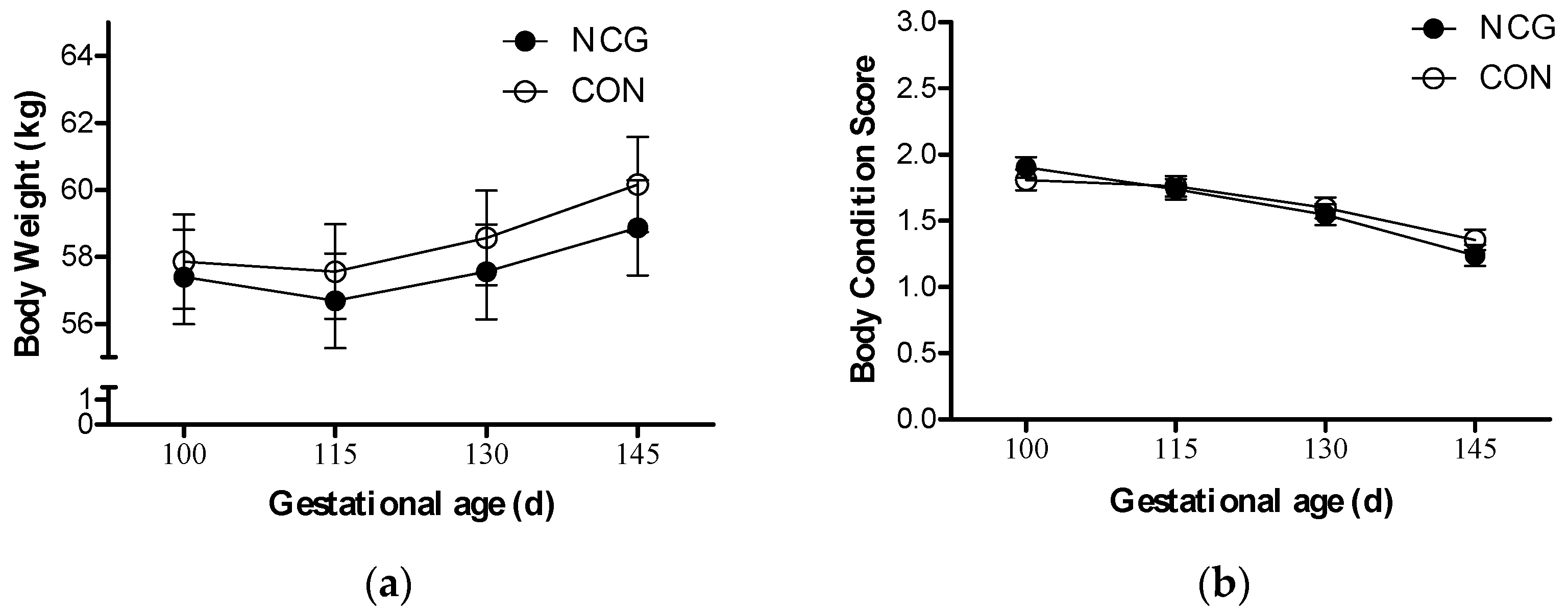 - Wu, G.; Bazer, F.W.; Cudd, T.A.; Meininger, C.J.; Spencer, T.E. Maternal Nutrition and Fetal Development. J. Nutr. 2004, 134, 2169–2172. [Google Scholar] [CrossRef]