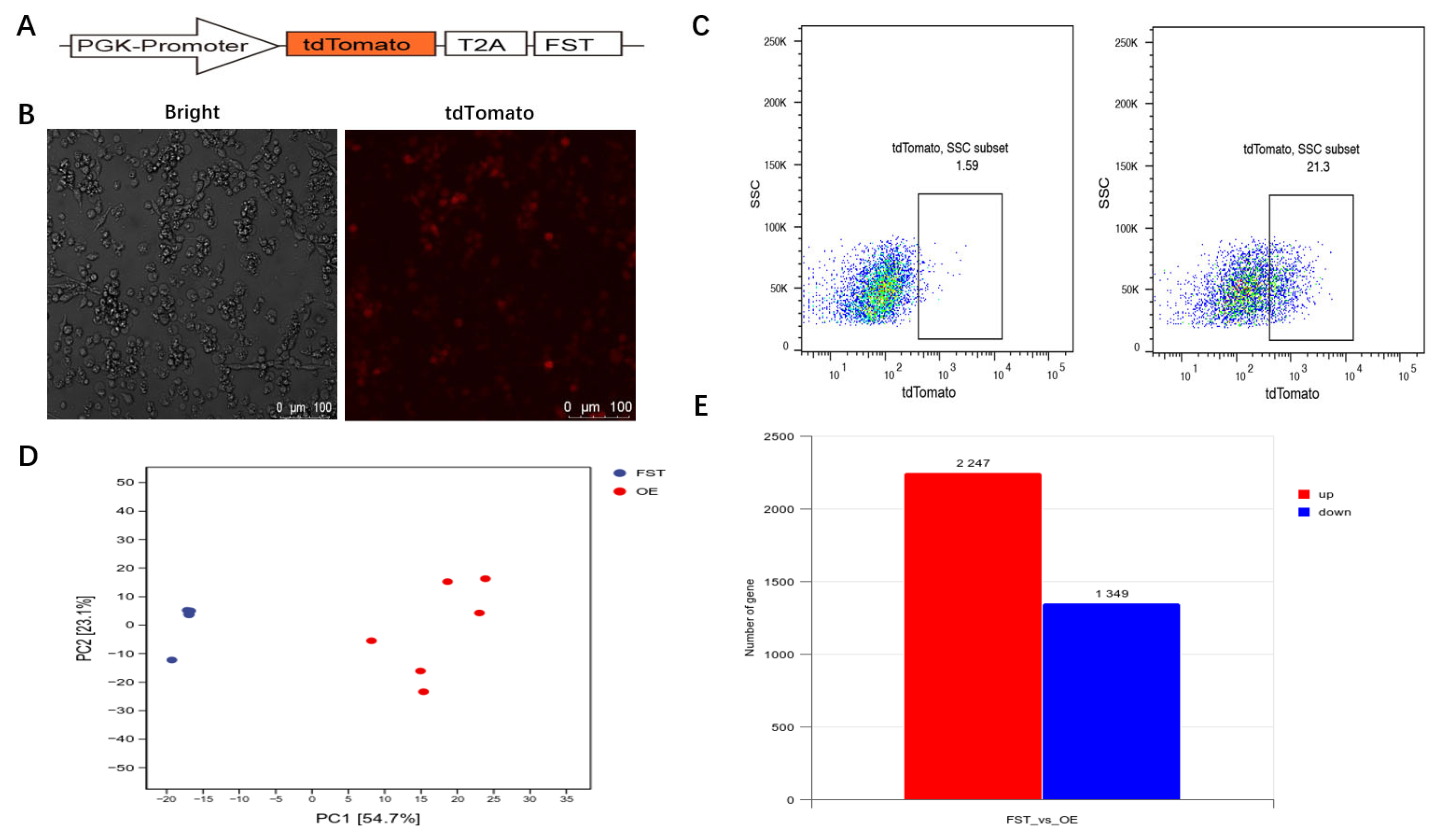 3.3. Gene Expression Analysis of FST-Overexpressed Cells