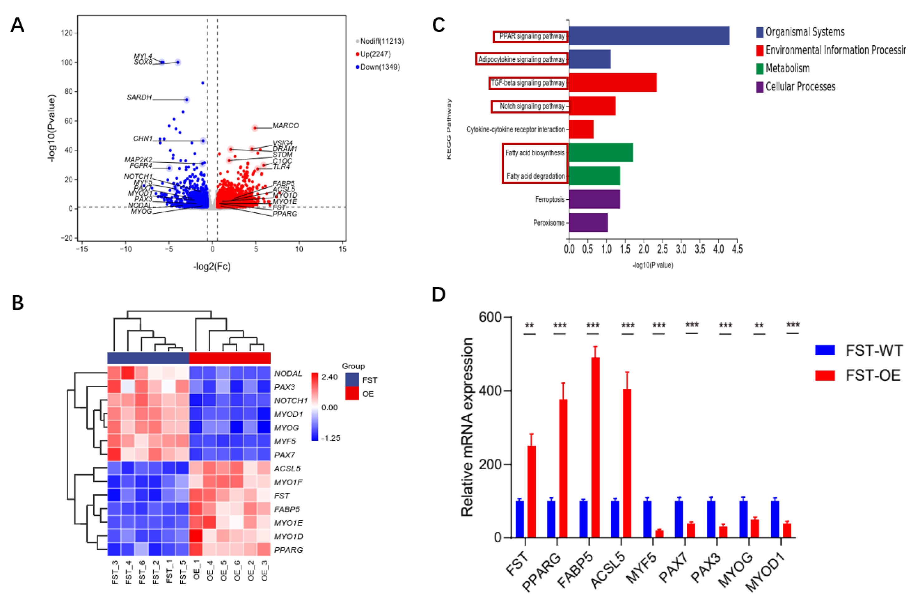 Wang, C.; Liu, Y.; Li, M.; Yang, Y.; Dai, J.; Chen, S.; Wang, H.; He, D. Comparative Transcriptome Analysis Reveals the Role of the FST Gene in Goose Muscle Development. Animals 2025, 15, 3009. https://doi.org/10.3390/ani15203009