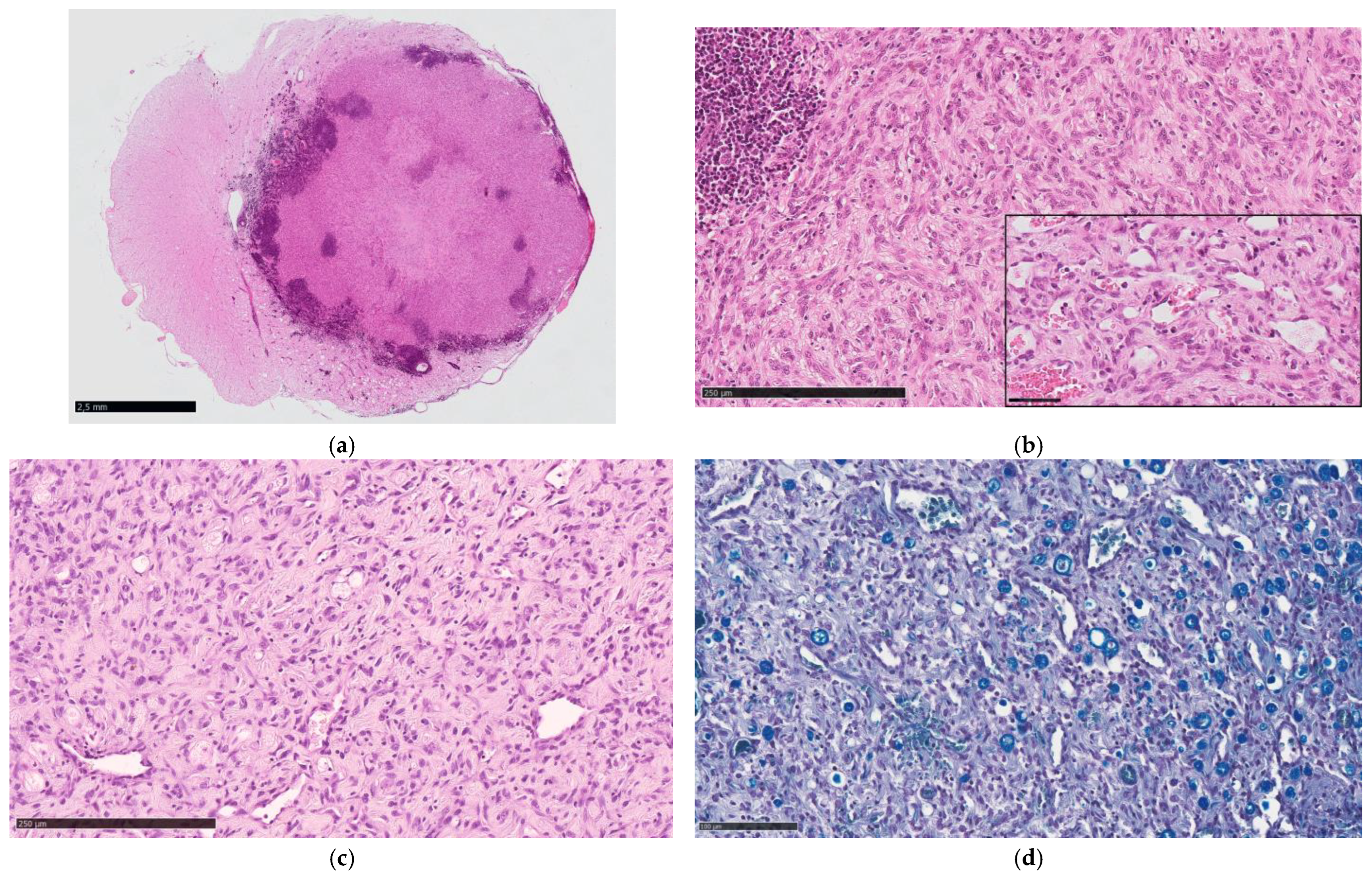 - Tekavec, K.; Švara, T.; Knific, T.; Gombač, M.; Cantile, C. Histopathological and immunohistochemical evaluation of canine nerve sheath tumors and proposal for an updated classification. Vet. Sci. 2022, 9, 204–230. [Google Scholar]