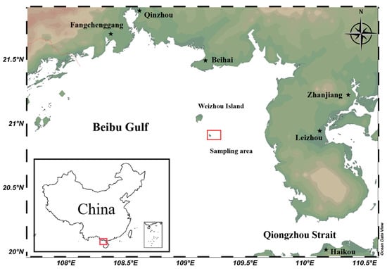 The water quality parameters recorded at the sampling area were as follows: water temperature 30.12 ± 0.21 °C, water depth (6.5–20 m) ± 0.54 m, salinity 33.3 ± 0.15‰, pH 8.14 ± 0.24, dissolved oxygen 6.53 ± 0.15 mg/L, and suspended solids 6.7 ± 0.72 mg/L.