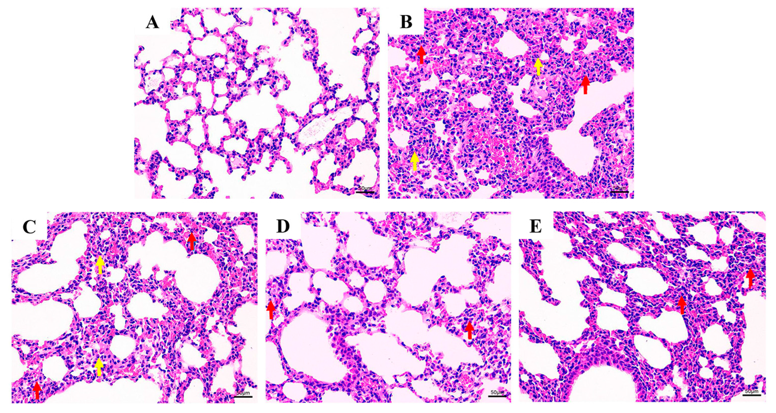 - Wang, S.M.; Wu, M.Y.; Ding, J.R.; Tan, W.; Jiang, H.B. Baicalin alleviates acute lung injury in vivo and in vitro. Int. Immunopharmacol. 2024, 143, 113128. [Google Scholar] [CrossRef]