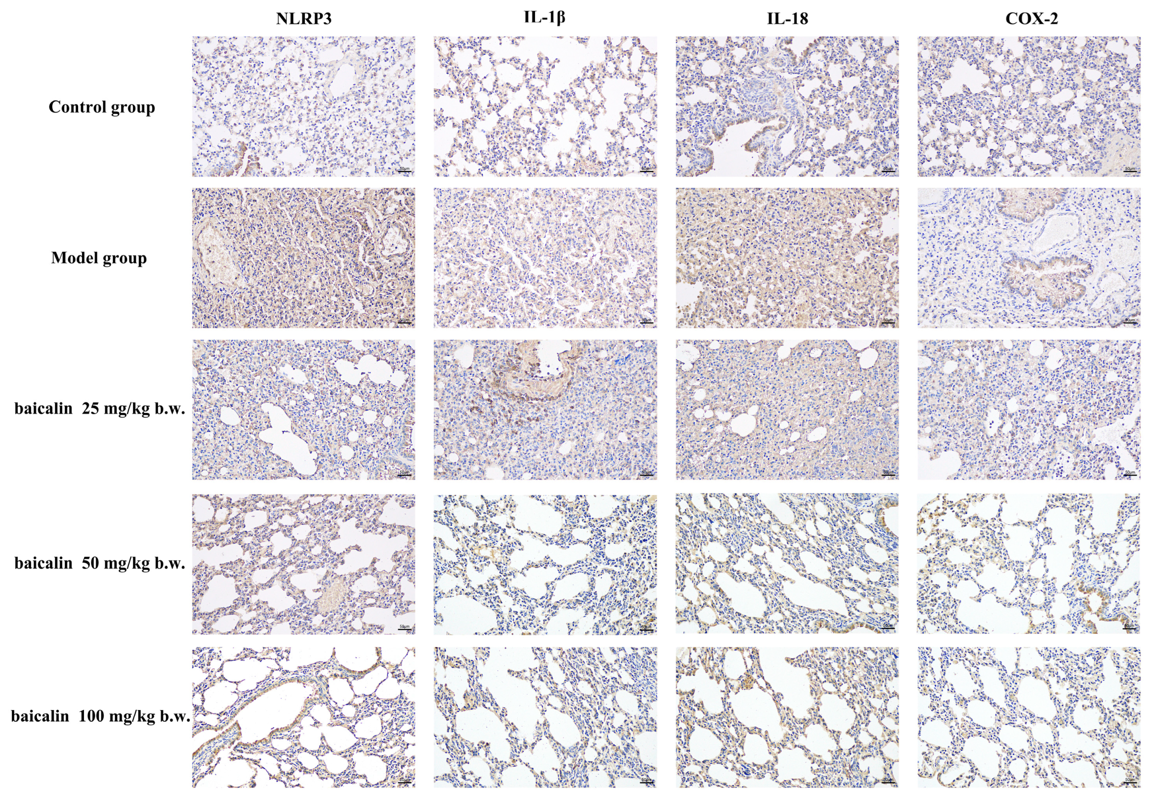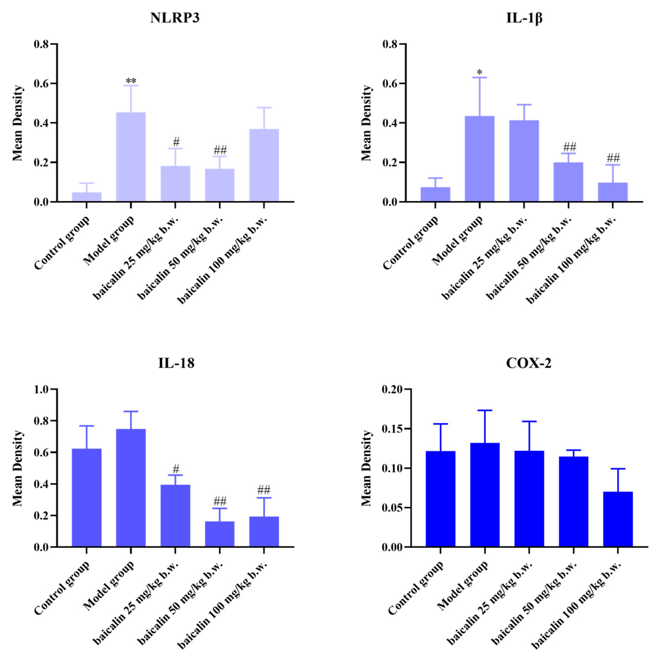 3.3. Expression of IL-1β, IL-18, COX-2, and NLRP3