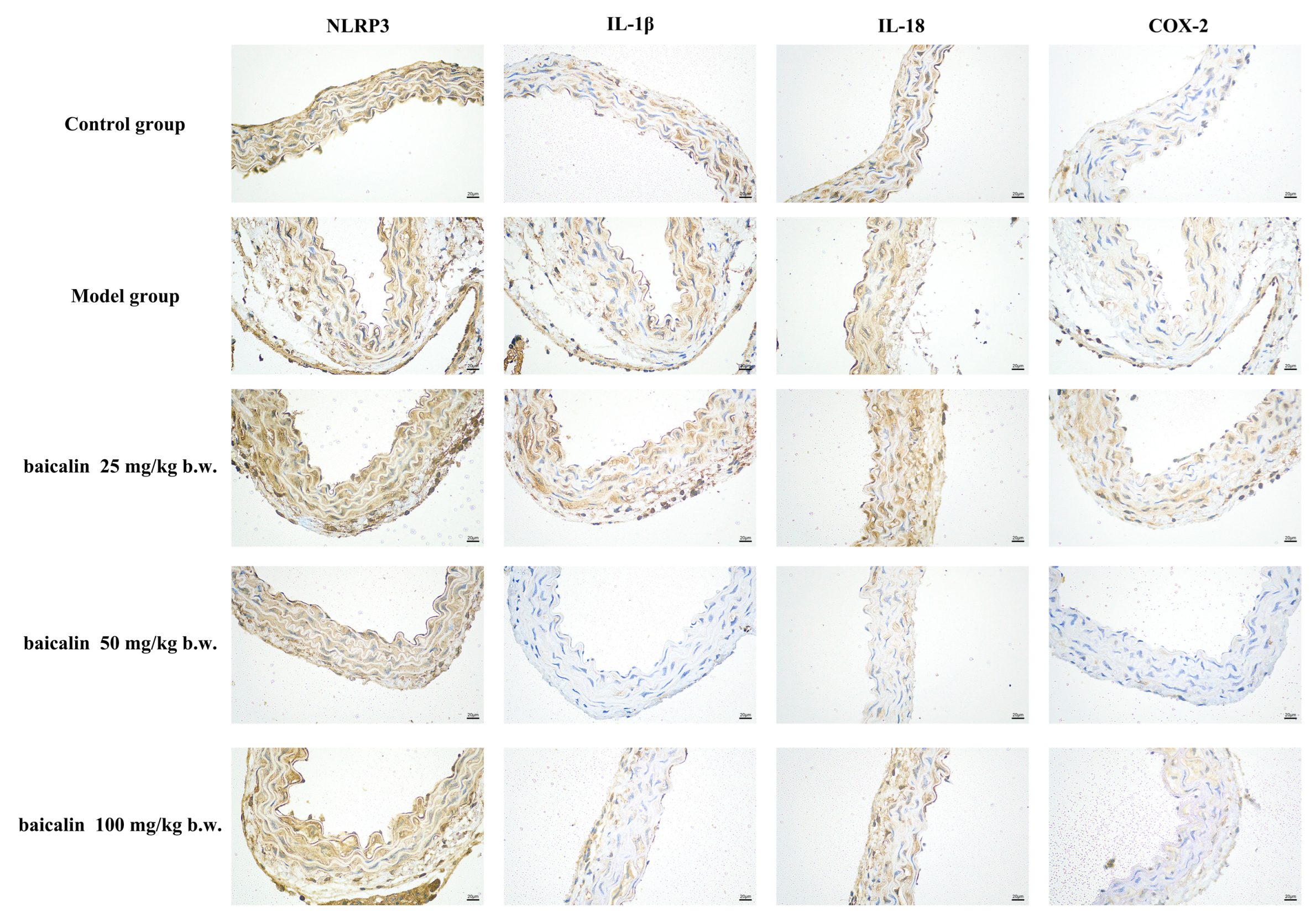 2.6. Immunohistochemical Assays for IL-1β, IL-18, COX-2, and NLRP3