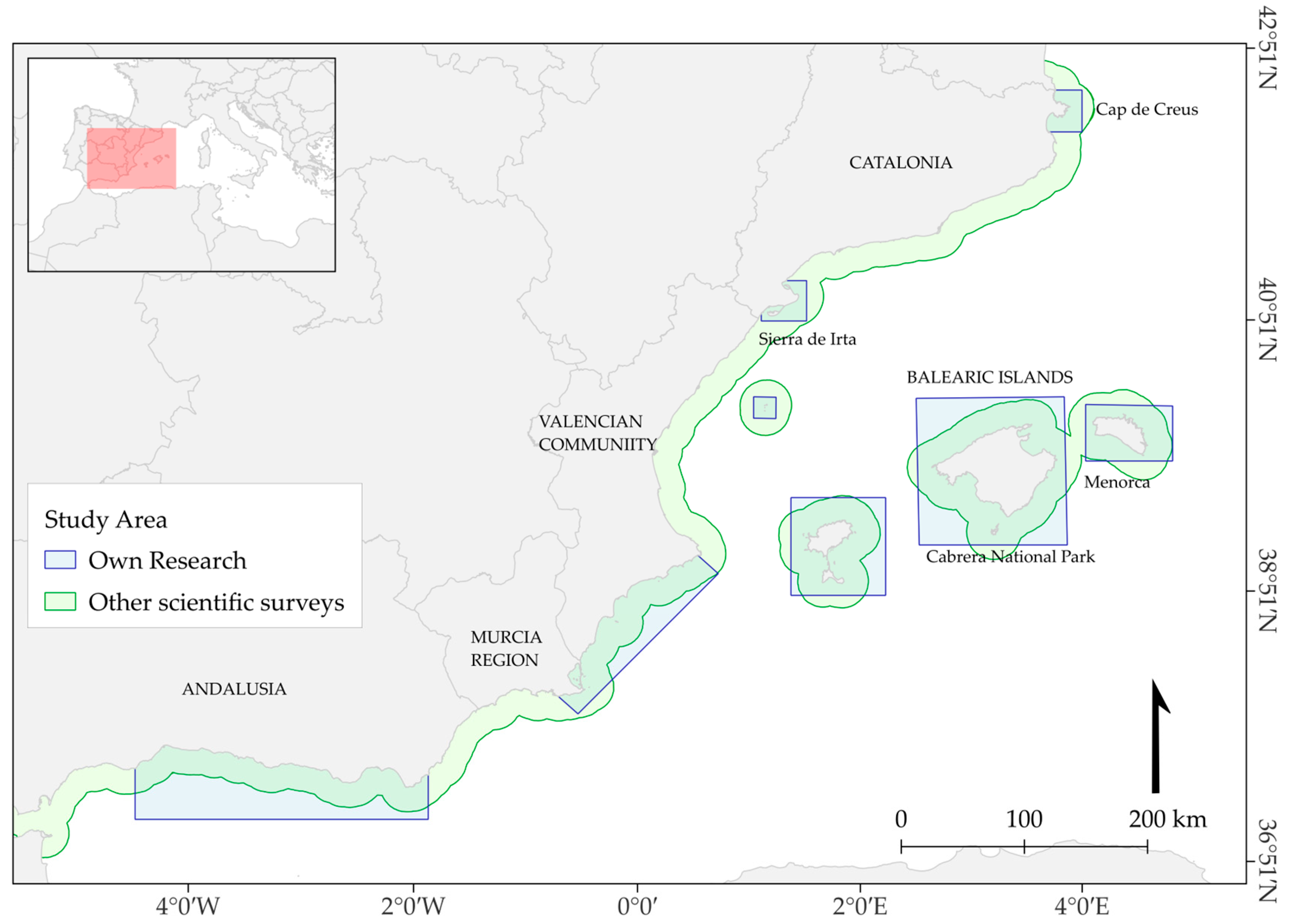 - Ministry for the Ecological Transition (Spain). Order TEC/596/2019, of 8 April, Amending the Annex to Royal Decree 139/2011, of 4 February, for the Development of the List of Wild Species under Special Protection Regime and the Spanish Catalogue of Endangered SpeciesOrder TEC/596/2019, of 8 April, Amending the Annex to Royal Decree 139/2011, of 4 February, for the Development of the List of Wild Species under Special Protection Regime and the Spanish Catalogue of Endangered Species; Ministry for the Ecological Transition: Madrid, Spain, 2019. [Google Scholar]
