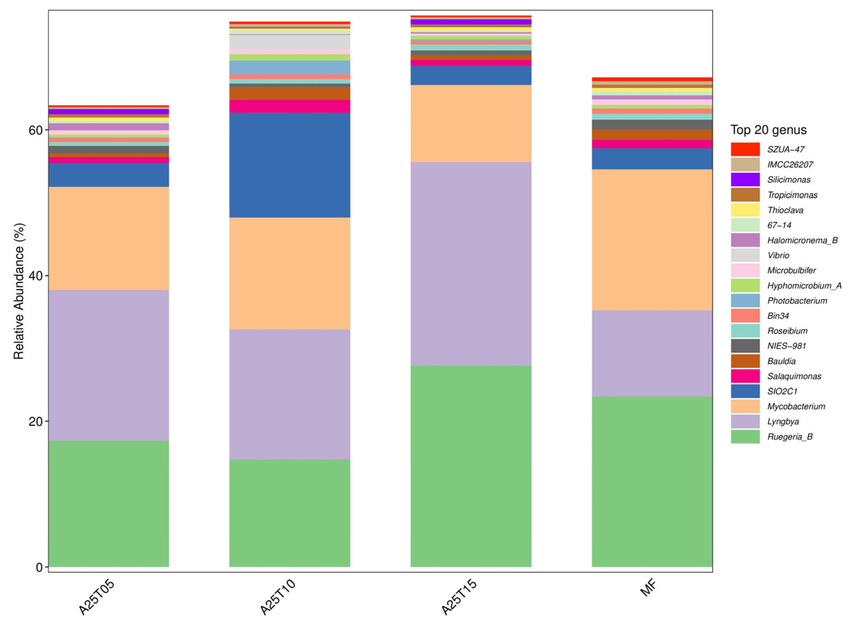 3.8. Effects of Taurine Supplementation on Intestinal Microbiota of T. ovatus