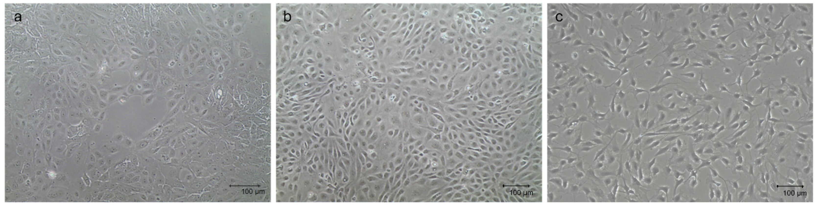 - La Mantia, D.; Nauwelaerts, N.; Bernardini, C.; Zannoni, A.; Salaroli, R.; Lin, Q.; Huys, I.; Annaert, P.; Forni, M. Development and Characterization of a Human Mammary Epithelial Cell Culture Model for the Blood–Milk Barrier—A Contribution from the ConcePTION Project. Int. J. Mol. Sci. 2024, 25, 11454. [Google Scholar] [CrossRef]