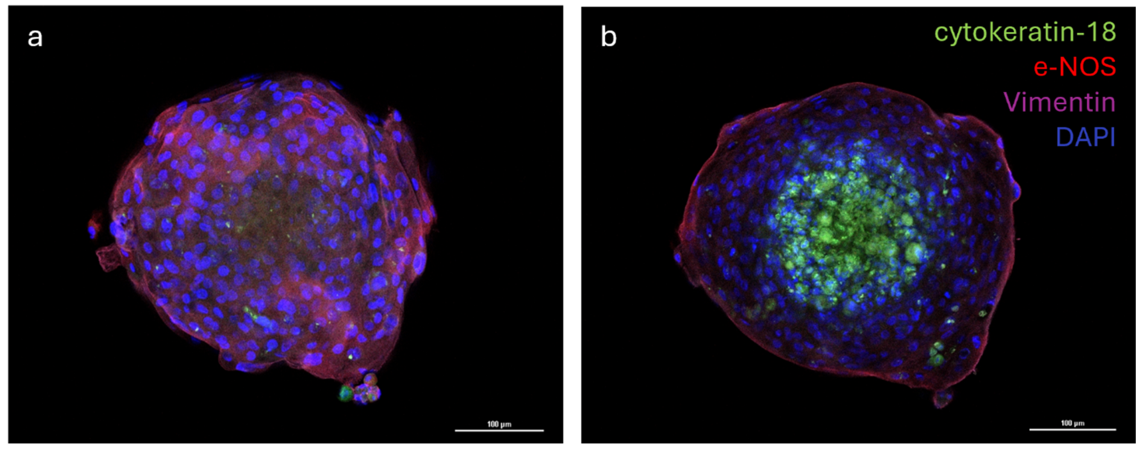 Chicago/Turabian StyleLa Mantia, Debora, Roberta Salaroli, Biljana Petrovic, Domenico Ventrella, Augusta Zannoni, Monica Forni, and Chiara Bernardini. 2025. "Mammary Epithelial Cell Spheroid: Stabilization Through Vascular-Wall Mesenchymal Stem Cells and Endothelial Cells Co-Culture" Animals 15, no. 21: 3095. https://doi.org/10.3390/ani15213095
