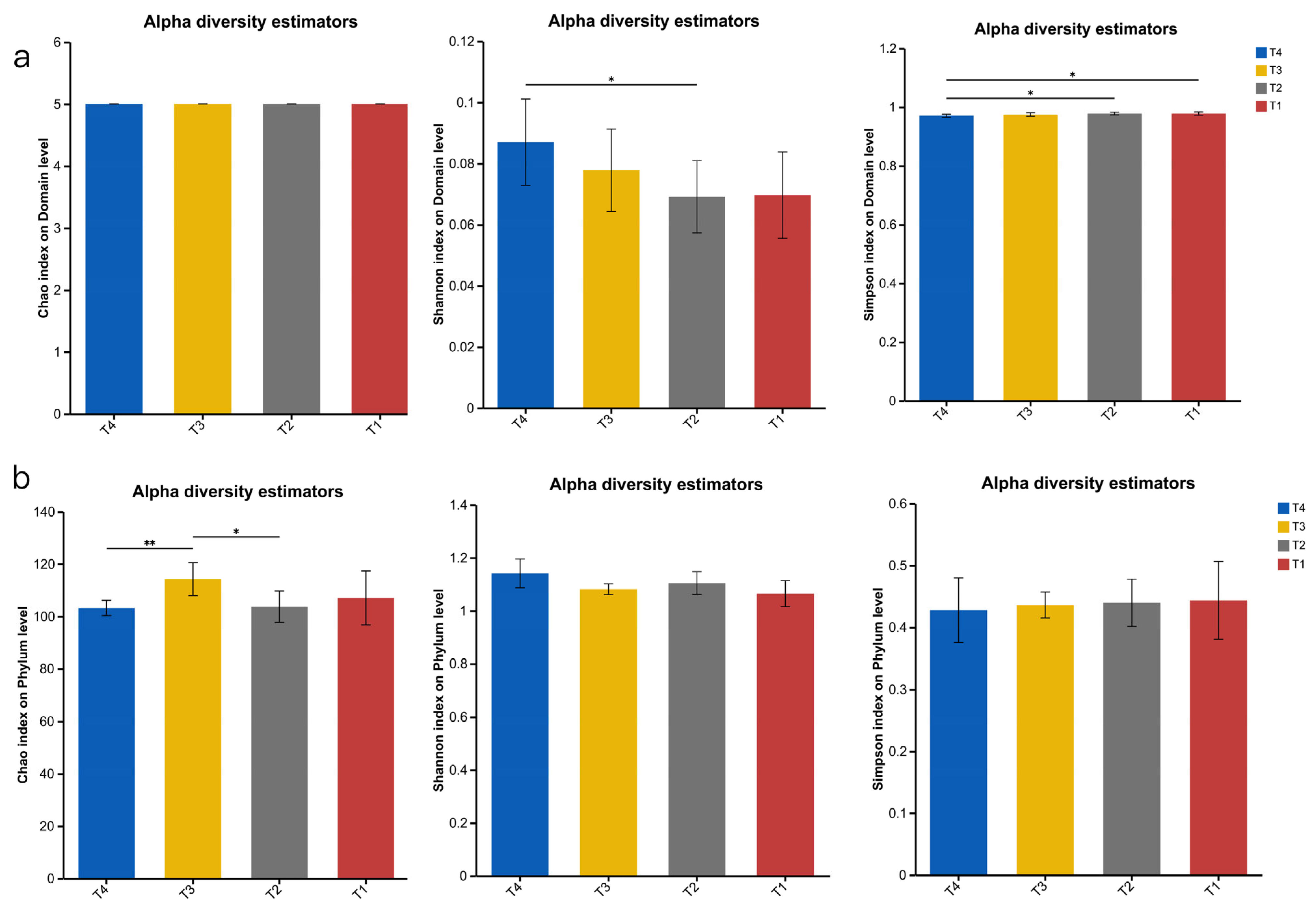 The rumen microbiota of ruminant animals is an important component of their digestive system. In this study, the urea, cottonseed meal, and rapeseed meal contained in the T4 group were rich in sulphur-containing amino acids, providing a more abundant nitrogen source for the T4 rumen microbiota, thereby enhancing microbial diversity, consistent with the findings of [