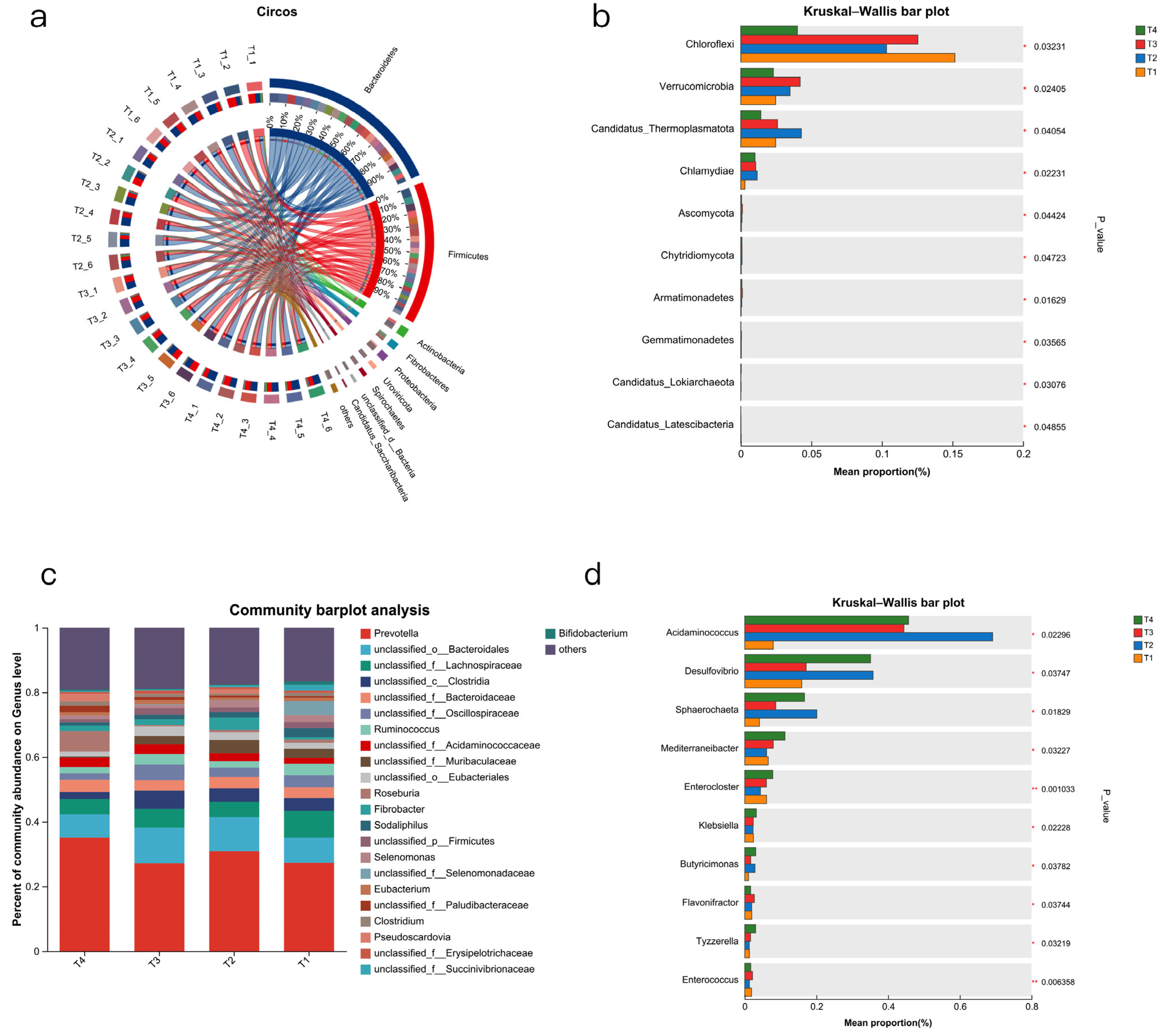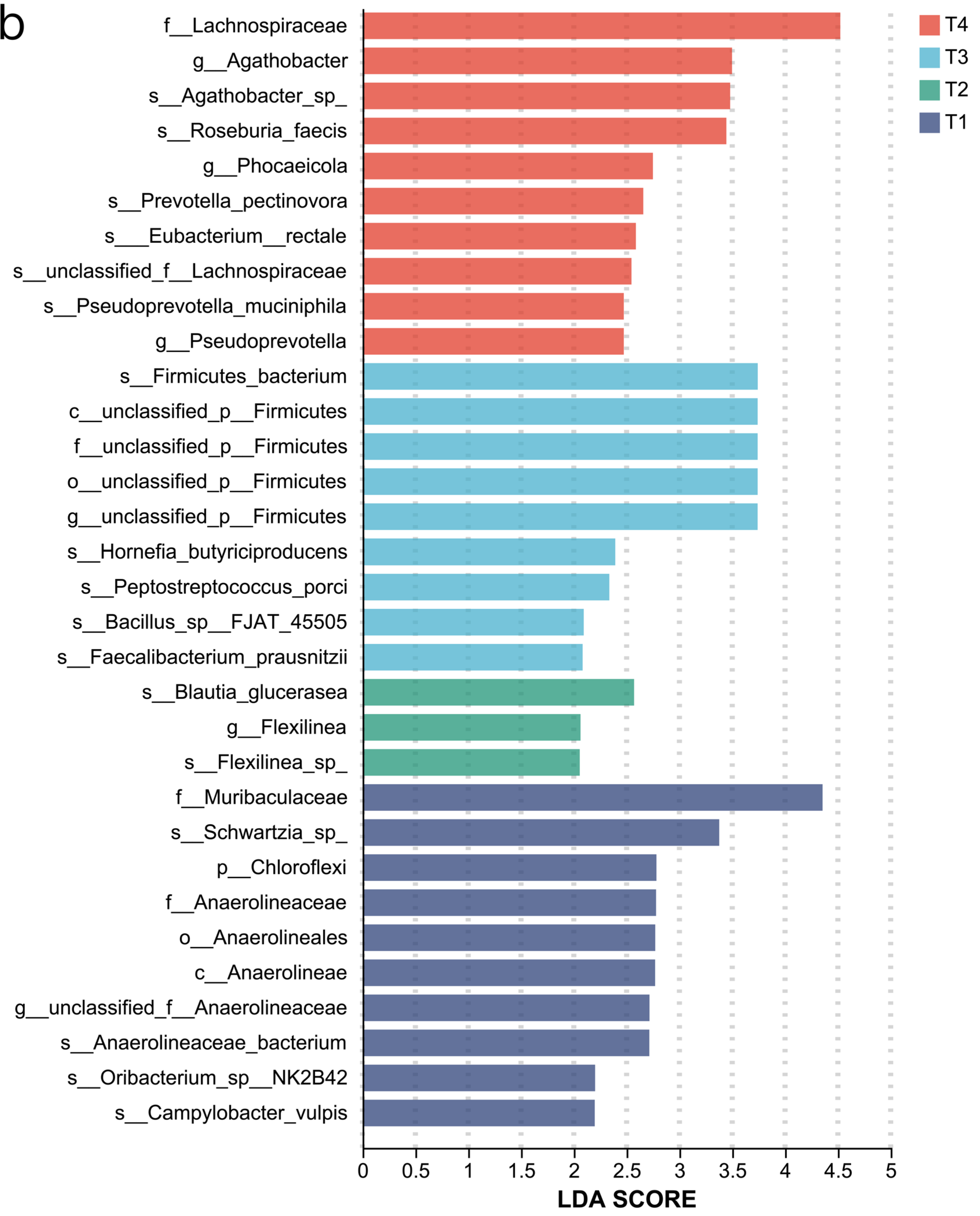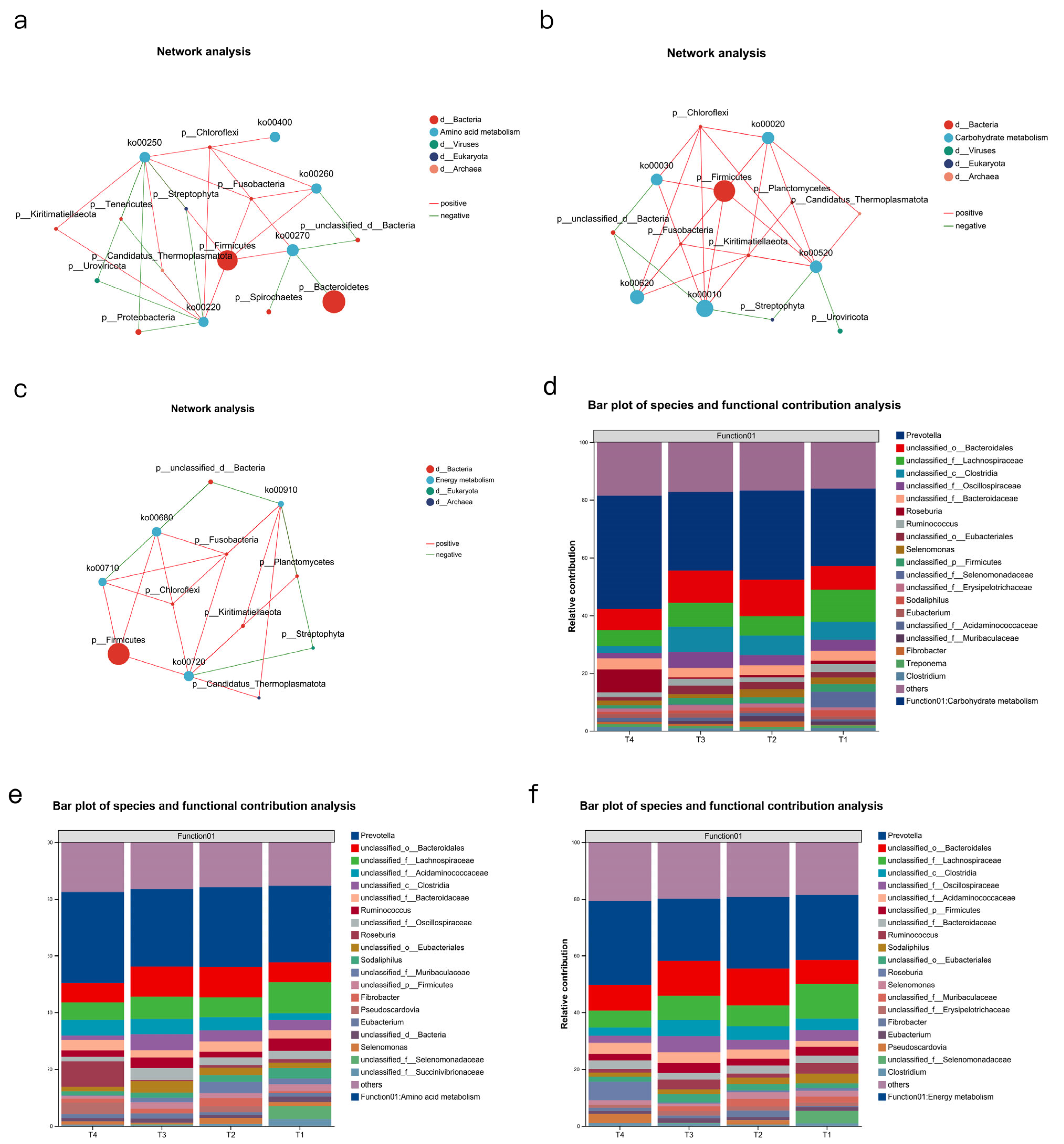 The T4 group has the richest ribosome, indicating that the rumen microorganisms are in an active proliferation state and require a large amount of synthetases (such as cellulase, amylase) and structural proteins. It is related to the host’s high feed utilization efficiency in the T4 group.