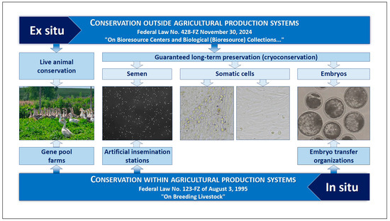 Zinovieva NA, Deniskova TE, Kharzinova VR, Bagirov VA, Romanov MN, Volkova VV, Grishina DS, Abdelmanova AS, Gusev IV, Shchukin IM, et al. Conservation of Native Livestock Breeds in Russia: Current State and Promising Prospects. Animals. 2025; 15(21):3103. https://doi.org/10.3390/ani15213103
