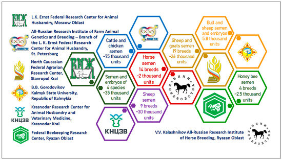 - Program for the Development of the National Center for Genetic Resources of Agricultural Animals for 2024–2030. Available online: http://publication.pravo.gov.ru/document/0001202410250065 (accessed on 27 August 2025).