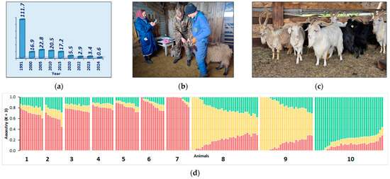 - Dmitriev, N.G.; Ernst, L.K. (Eds.) Animal Genetic Resources of the USSR; FAO Animal Production and Health Paper 65; FAO: Rome, Italy, 1989; Available online: https://www.fao.org/4/ah759e/AH759E00.htm (accessed on 27 August 2025).