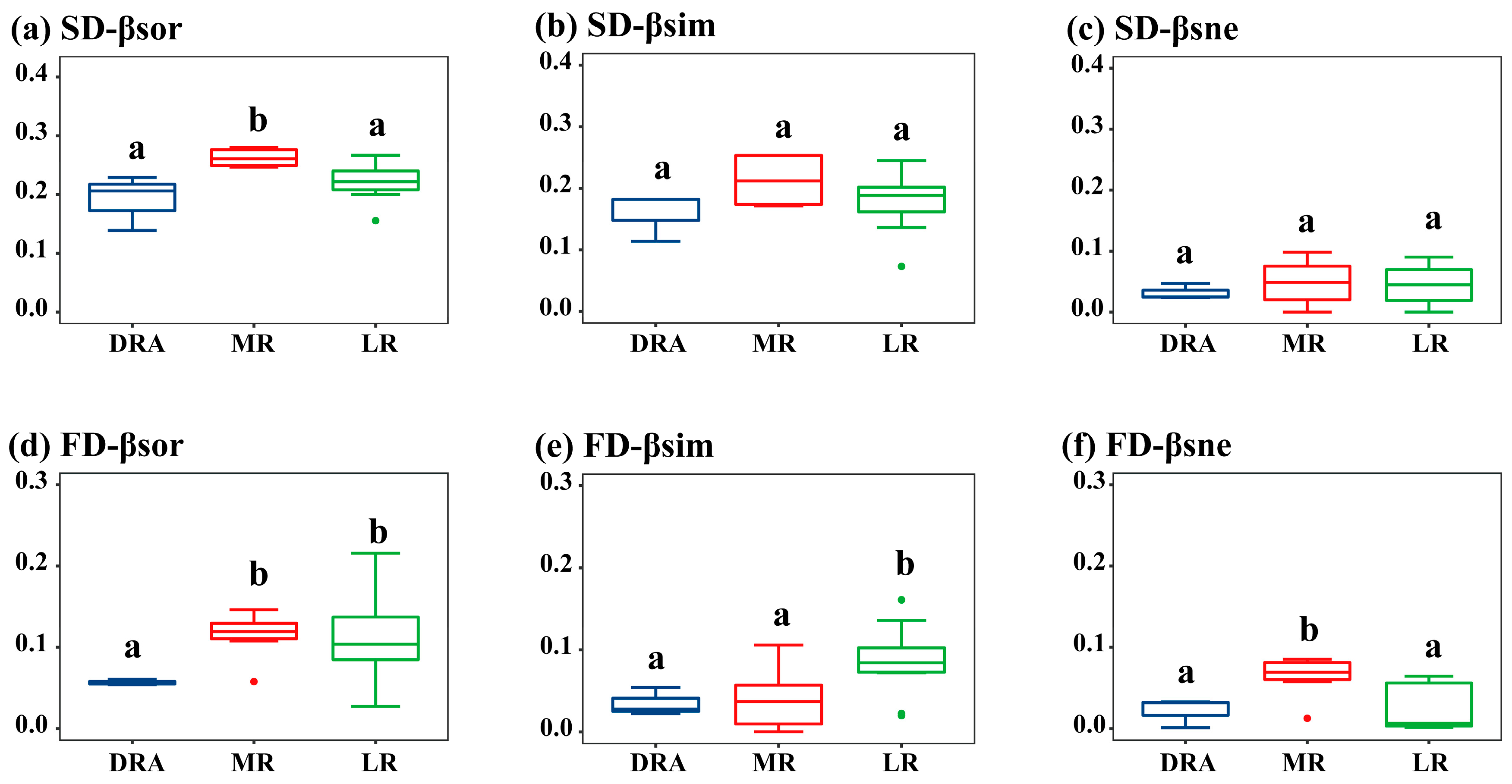 3.2. Spatial Patterns of α-Diversity and β-Diversity