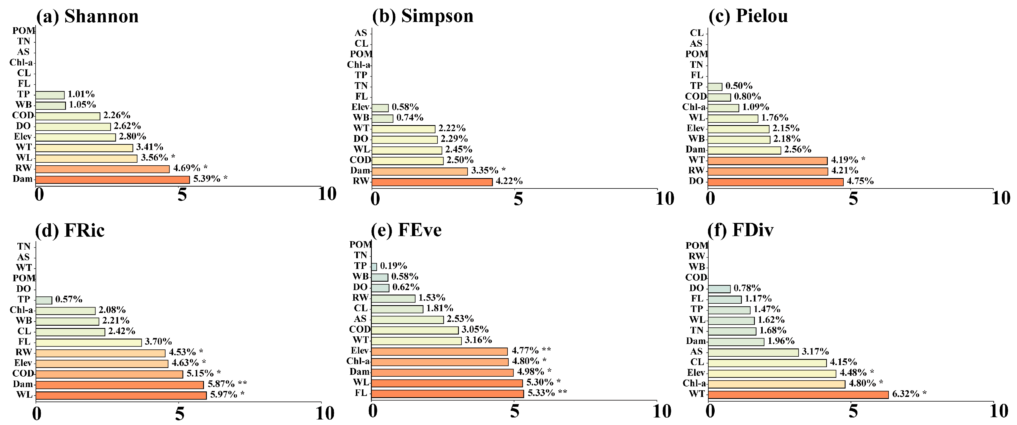 - Xiong, F.; Olden, J.D.; Lu, Y.; Liu, H.; Qu, X.; Xia, W.; Guo, C.; Wu, X.; Infante, D.M.; Wang, L.; et al. Riparian Land Use and In-Channel Stressors Drive Fish Community Structure in the Yangtze River. Landsc. Ecol. 2021, 36, 3079–3095. [Google Scholar] [CrossRef]