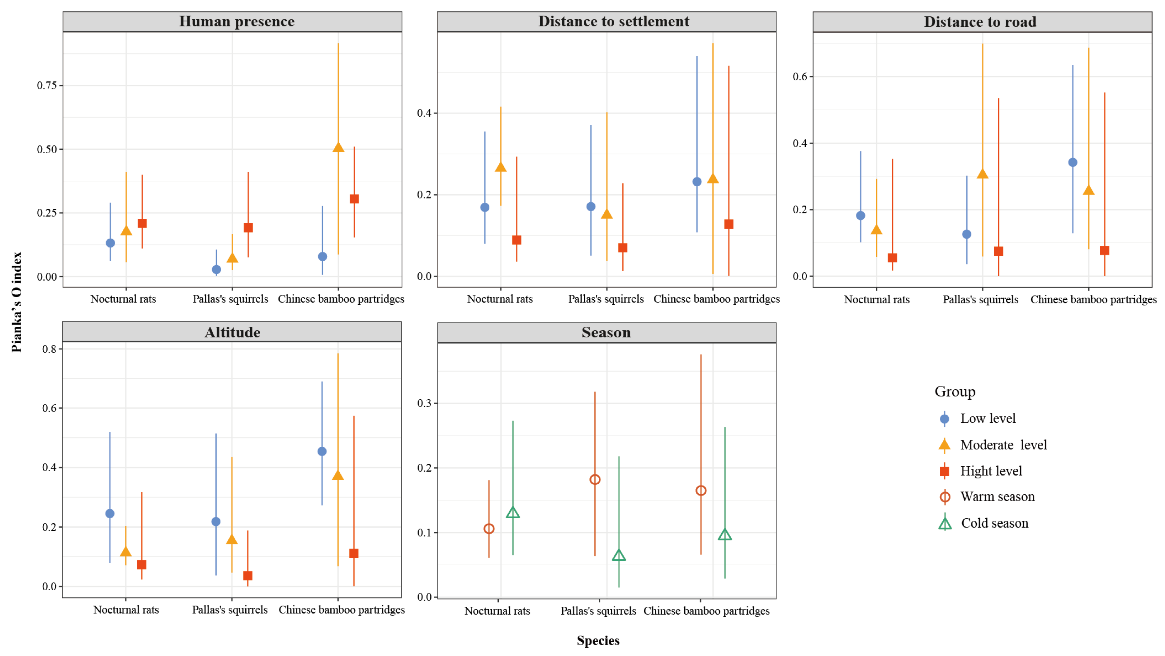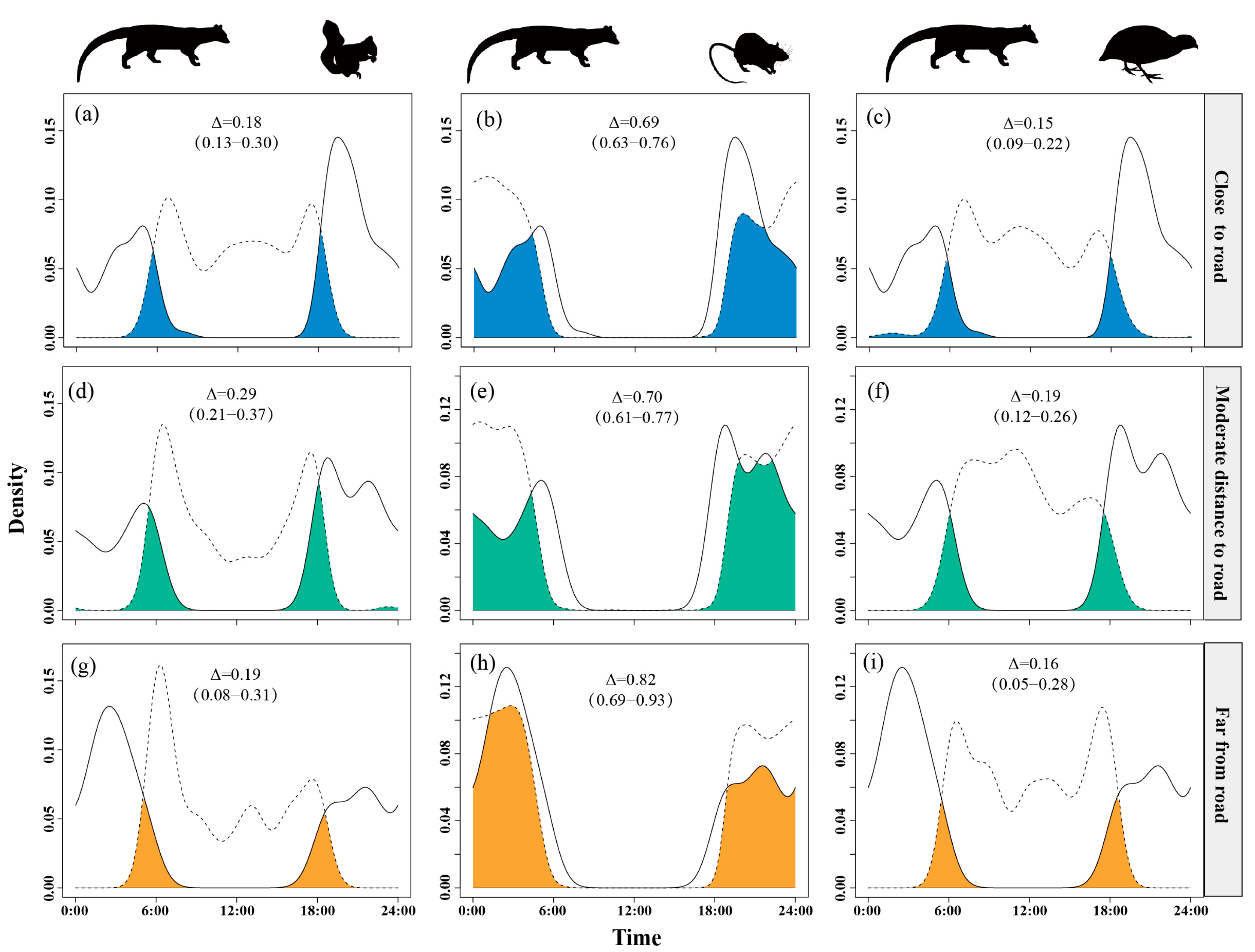 - Li, X.; Bleisch, W.V.; Hu, W.; Li, Q.; Wang, H.; Chen, Z.; Bai, R.; Jiang, X.-L. Human Disturbance Increases Spatiotemporal Associations among Mountain Forest Terrestrial Mammal Species. eLife 2024, 12, RP92457. [Google Scholar] [CrossRef] [PubMed]
