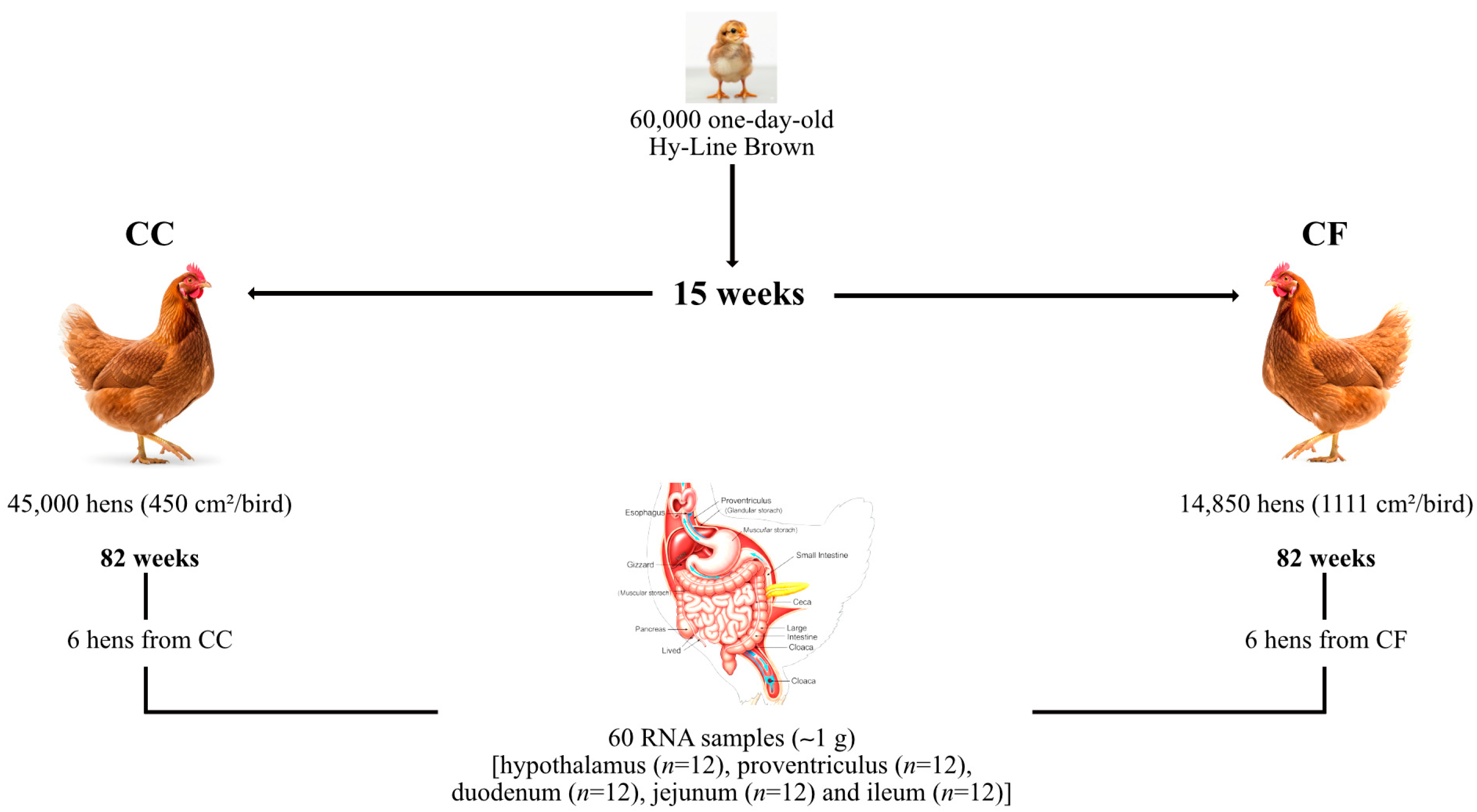 - Herrera-Sánchez, M.P.; Rodríguez-Hernández, R.; Rondón-Barragán, I.S. Comparative Transcriptome Analysis of Hens’ Livers in Conventional Cage vs. Cage-Free Egg Production Systems. Vet. Med. Int. 2025, 2025, 3041254. [Google Scholar] [CrossRef]