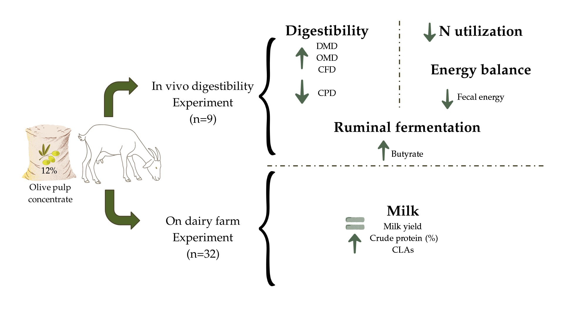 Sánchez-García, A.M.; Romero-Huelva, M.; Pino-López, N.; Jiménez-Romero, I.; Rosillo-Lozano, J.A.; Martín-García, A.I. Inclusion of Novel Olive Pulp: Impacts on Nutrient Digestibility, Rumen Fermentation, and Dairy Goat Performance. Animals 2025, 15, 3128. https://doi.org/10.3390/ani15213128