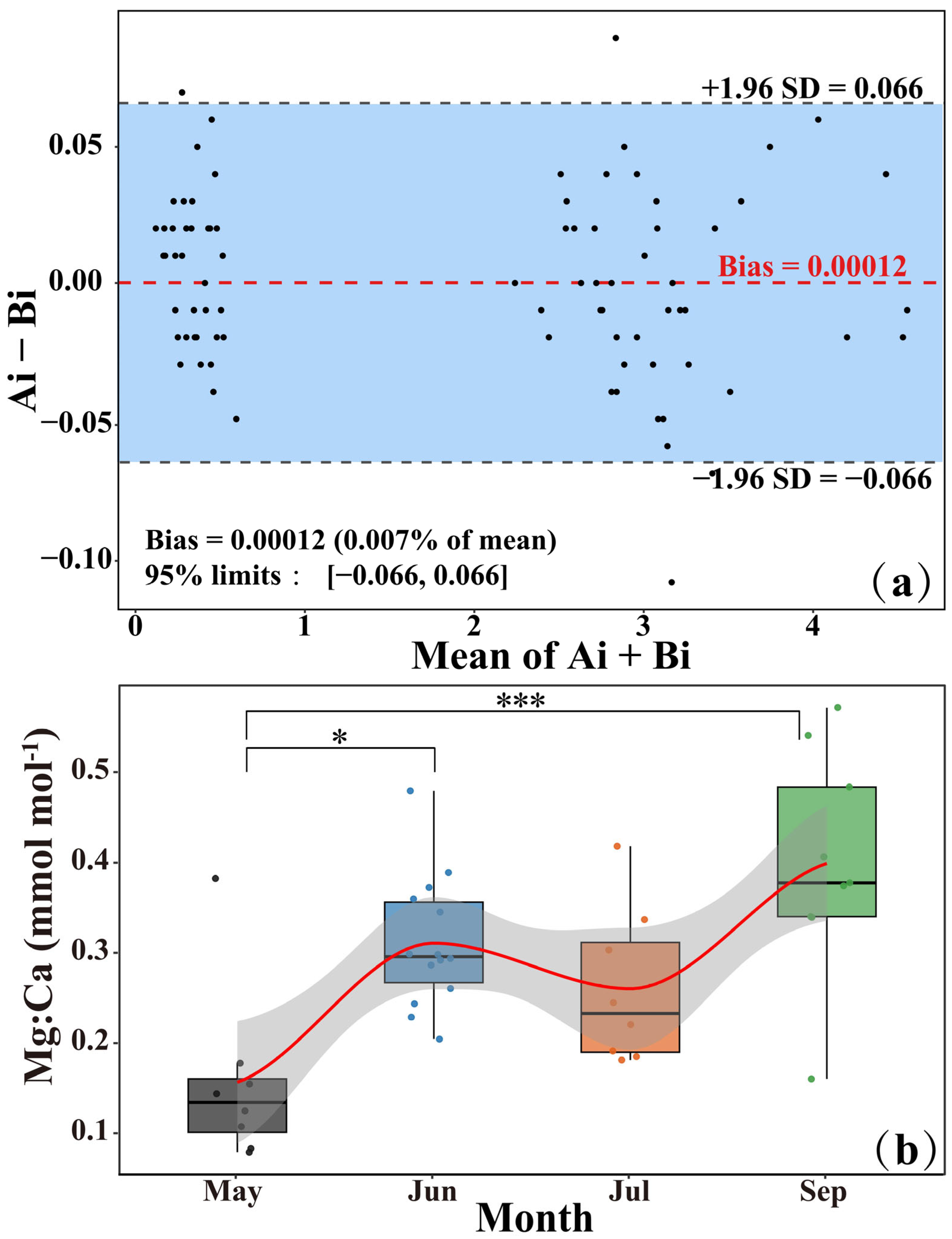 4.1. Feasibility of Using Mg:Ca as a Chemical Clock for M. miiuy