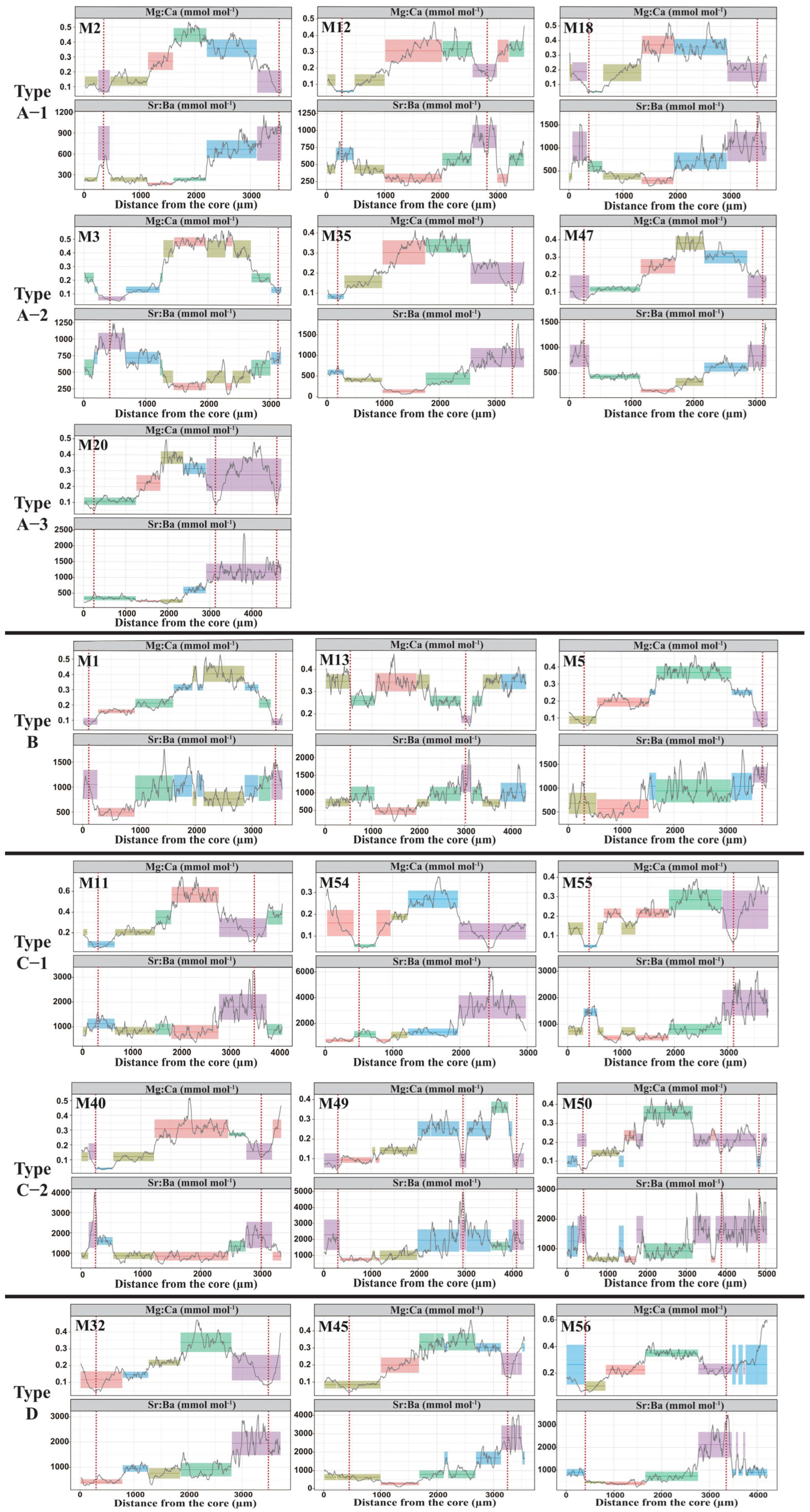 - Reconstruct the migratory life history of M. miiuy by combining information from the magnesium chemical clock and Sr:Ba of otoliths.