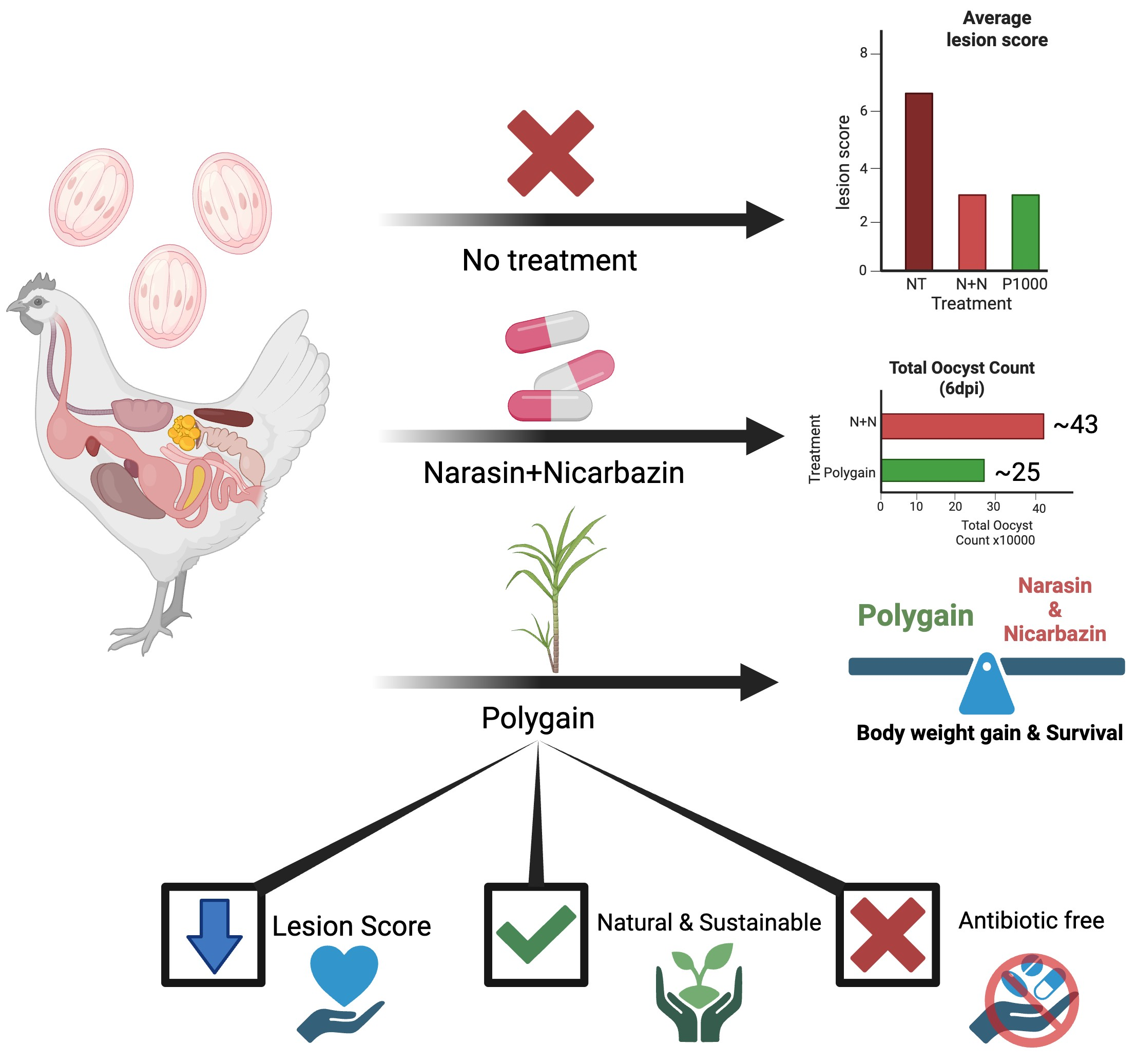 Effect of Polygain™ Supplementation on Growth Performance, Lesion Severity, and Oocyst Shedding in Eimeria-Challenged Broiler Chickens