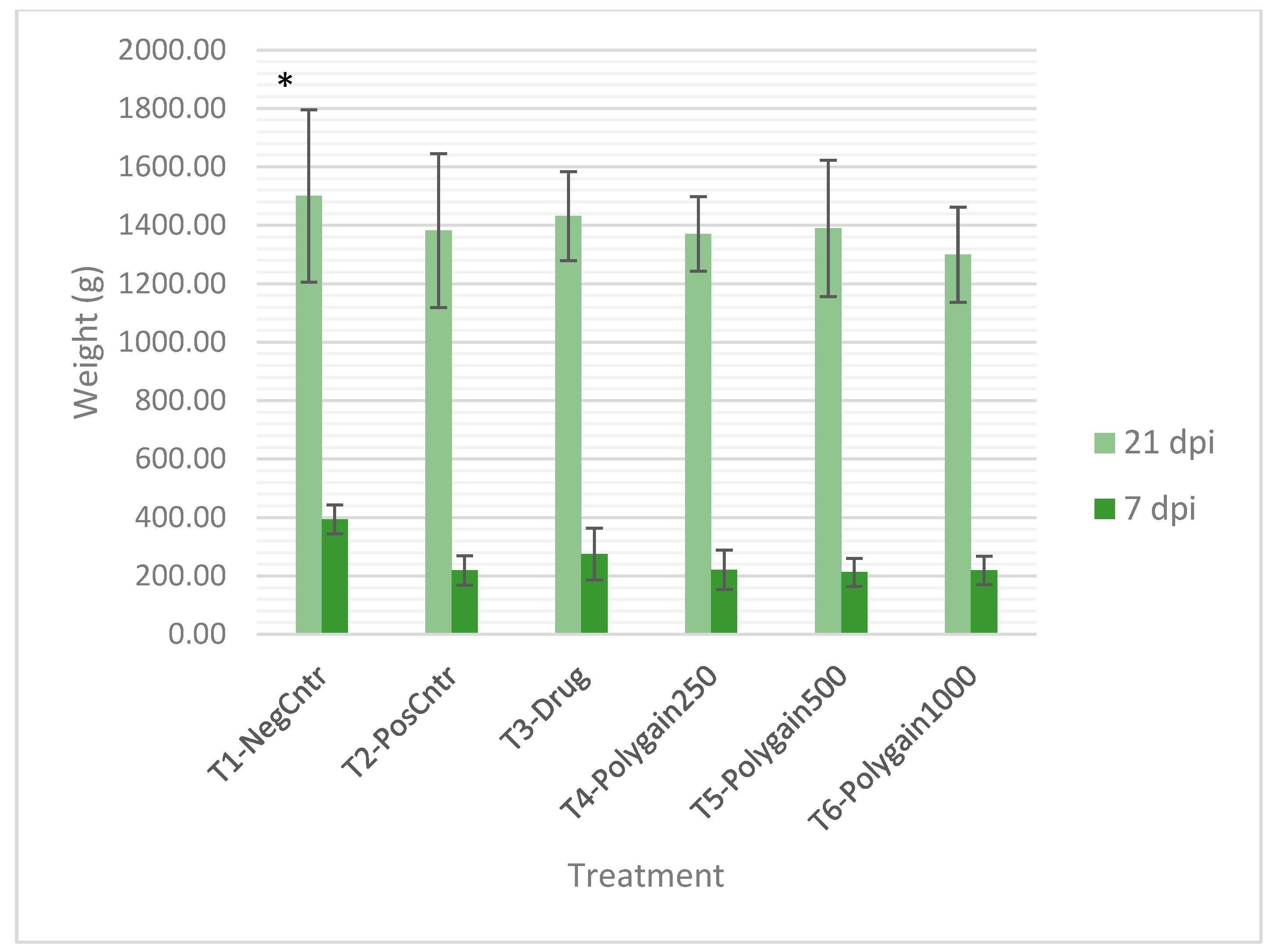 | T6-Polygain1000 | 0.6 ± 1.1 C | 0.6 ± 1.1 B | 1.6 ± 0.9 C | 2.9 ± 06 C | 0.5 ± 0.6 C | 0.4 ± 0.6 C | 0 A | 1.0 ± 0.3 AB |