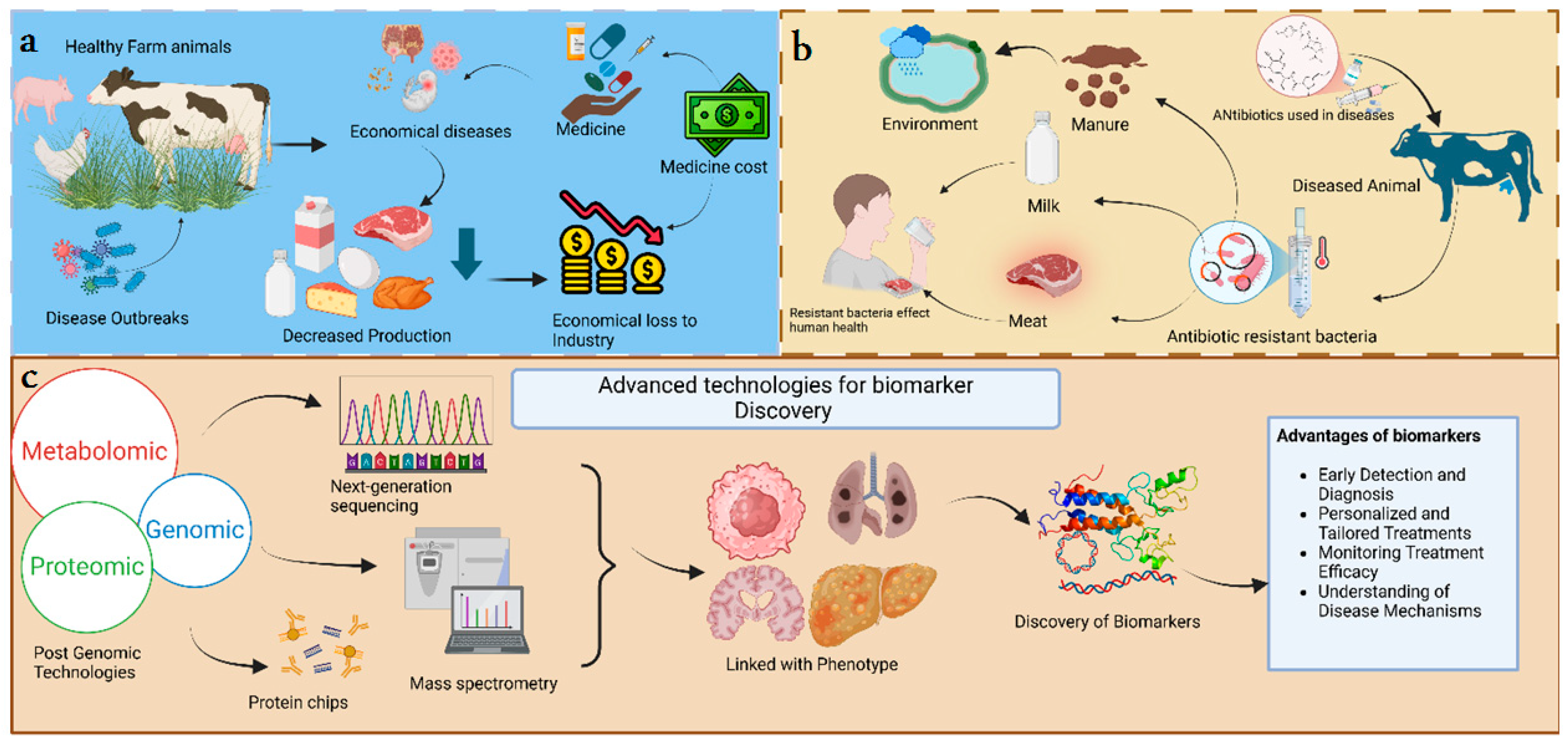 Eman, S.; Mohai Ud Din, R.; Zafar, M.H.; Zhang, M.; Wen, X.; Ma, J.; Saleh, A.A.; Husien, H.M.; Wang, M.; Guo, X. Technologies in Biomarker Discovery for Animal Diseases: Mechanisms, Classification, and Diagnostic Applications. Animals 2025, 15, 3132. https://doi.org/10.3390/ani15213132