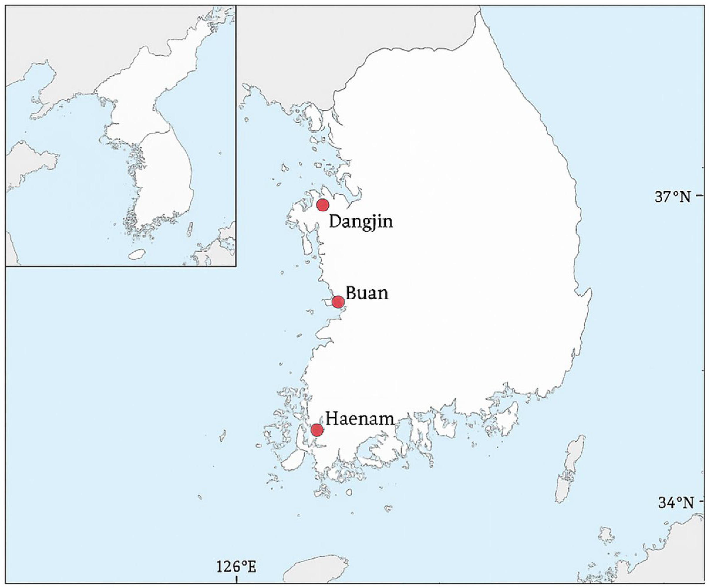 Table 1. Total number of valid recording days per year at each study site (Dangjin, Buan and Haenam) from 2018 to 2022.