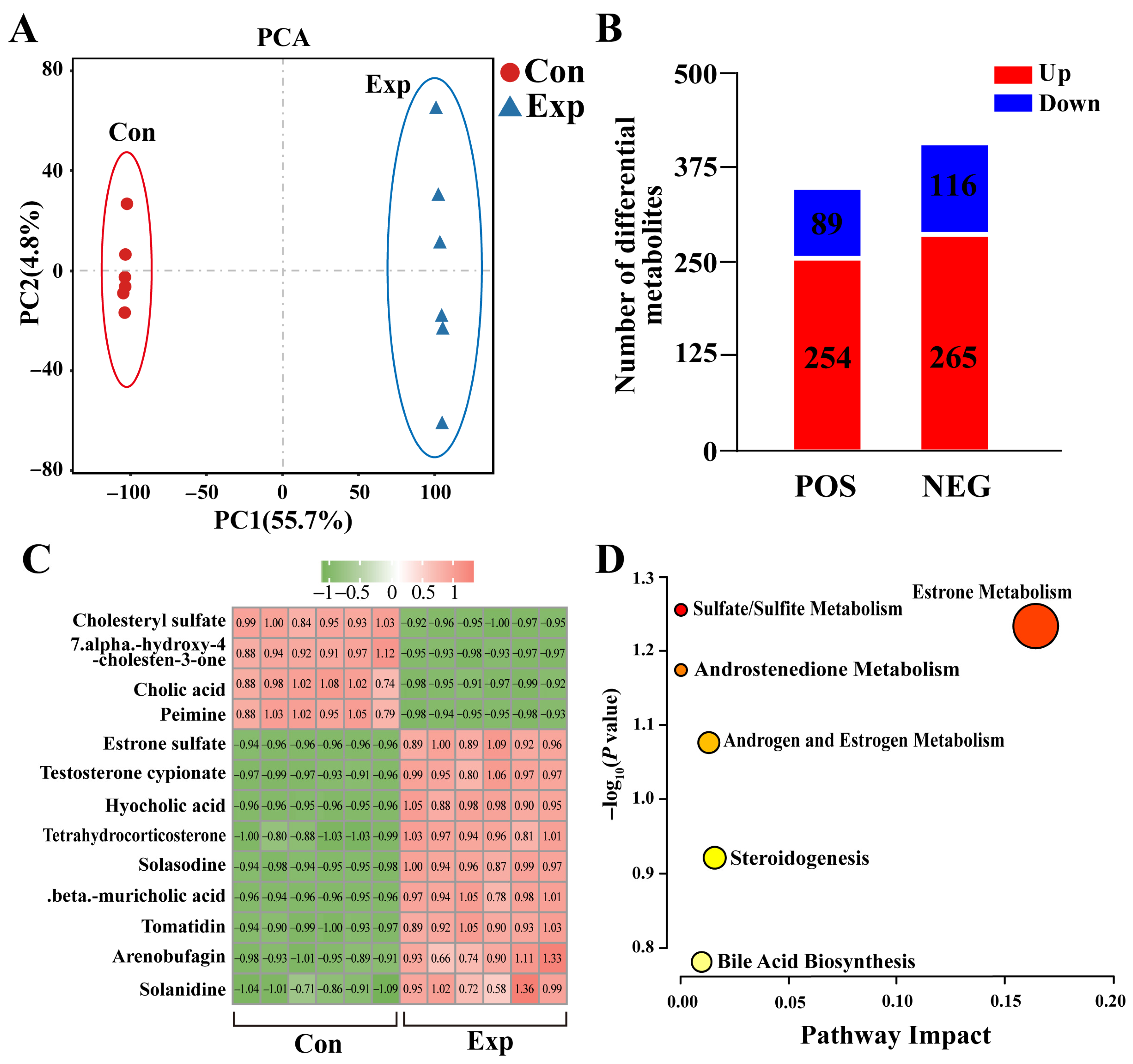 3.2. Identification of Steroid-Associated DEMs from Metabolomics in Camel PGs
