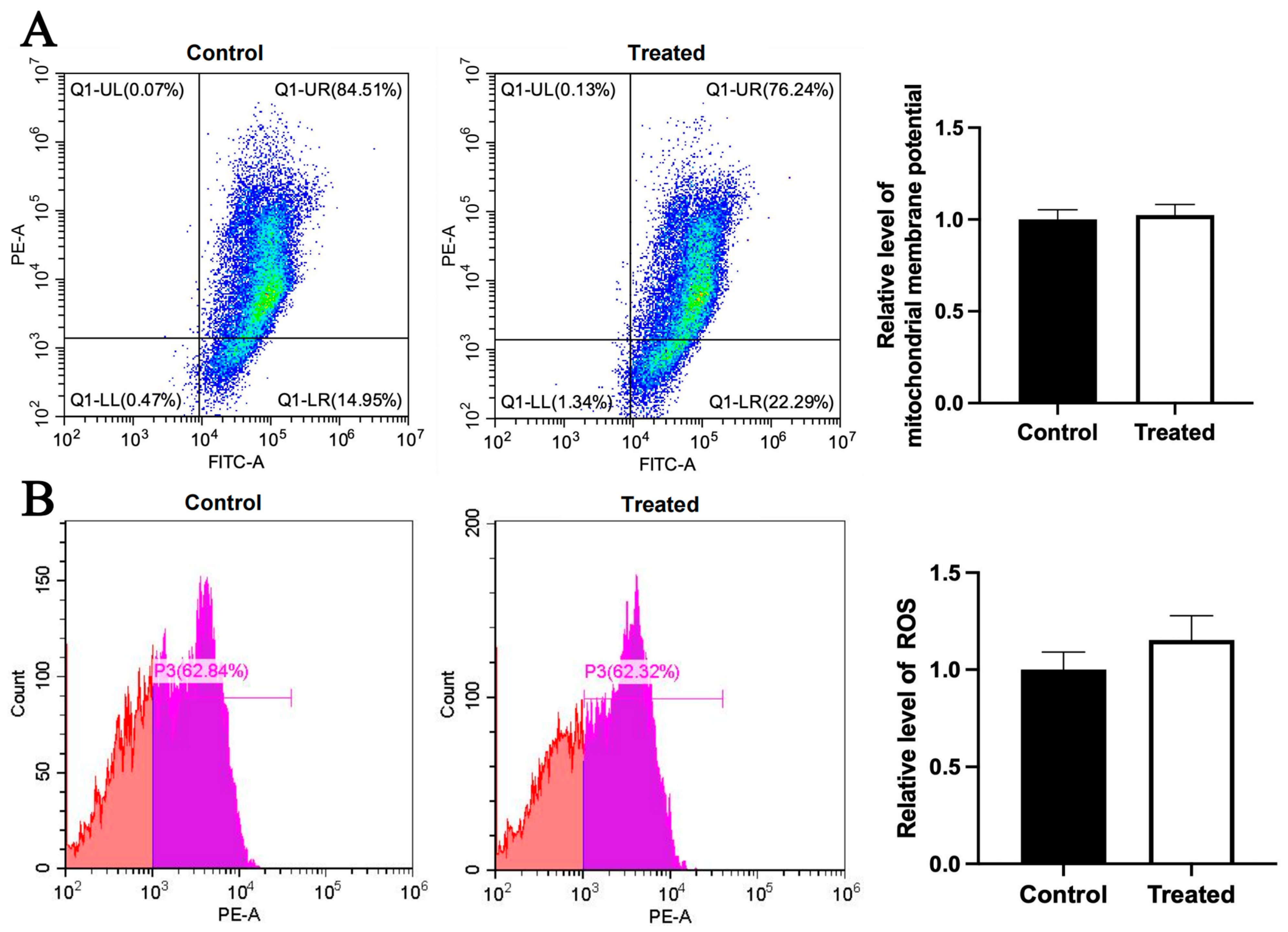 The ROS level in the cell was determined using the Reactive Oxygen Species Assay Kit (Solarbio, Beijing, China) according to the manufacturer’s instructions. In short, staining solution diluted with Opti-MEM (GBICO, Waltham, MA, USA) was added to the cells isolated from liver tissue or the cultured cells collected, followed by mixing well and incubating at 37 °C for 20 min in a dark place. After incubation, the staining solution was removed, and the cells were rinsed with Opti-MEM 3 times. The cells were then resuspended with an appropriate amount of Opti-MEM. Finally, the ROS level was determined by flow cytometry.