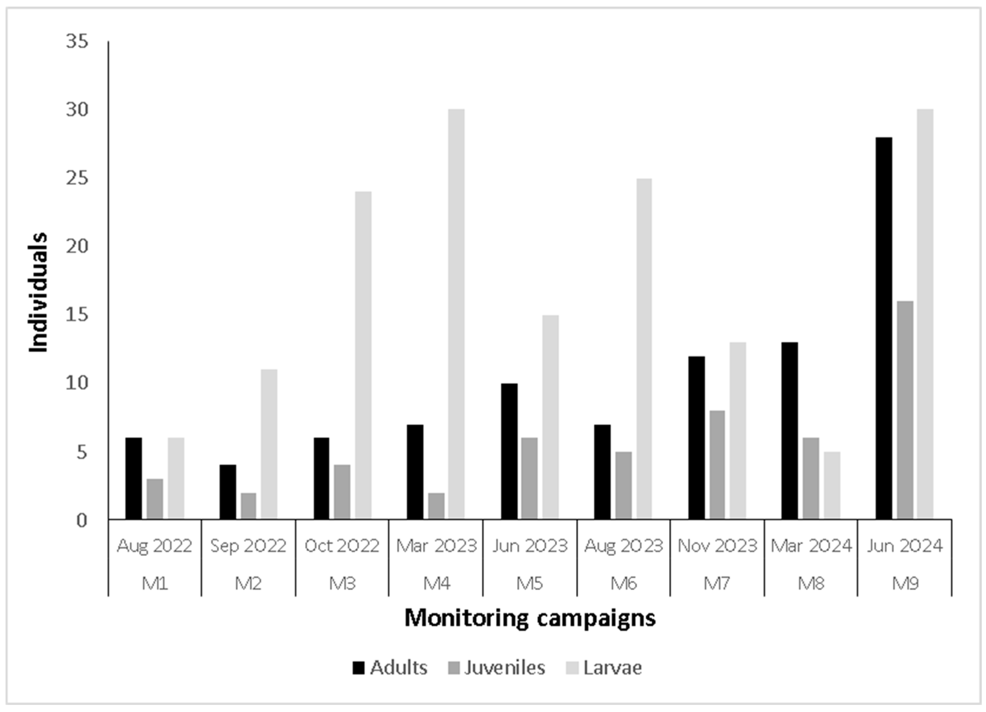 3.2. Population Aspects of Larvae
