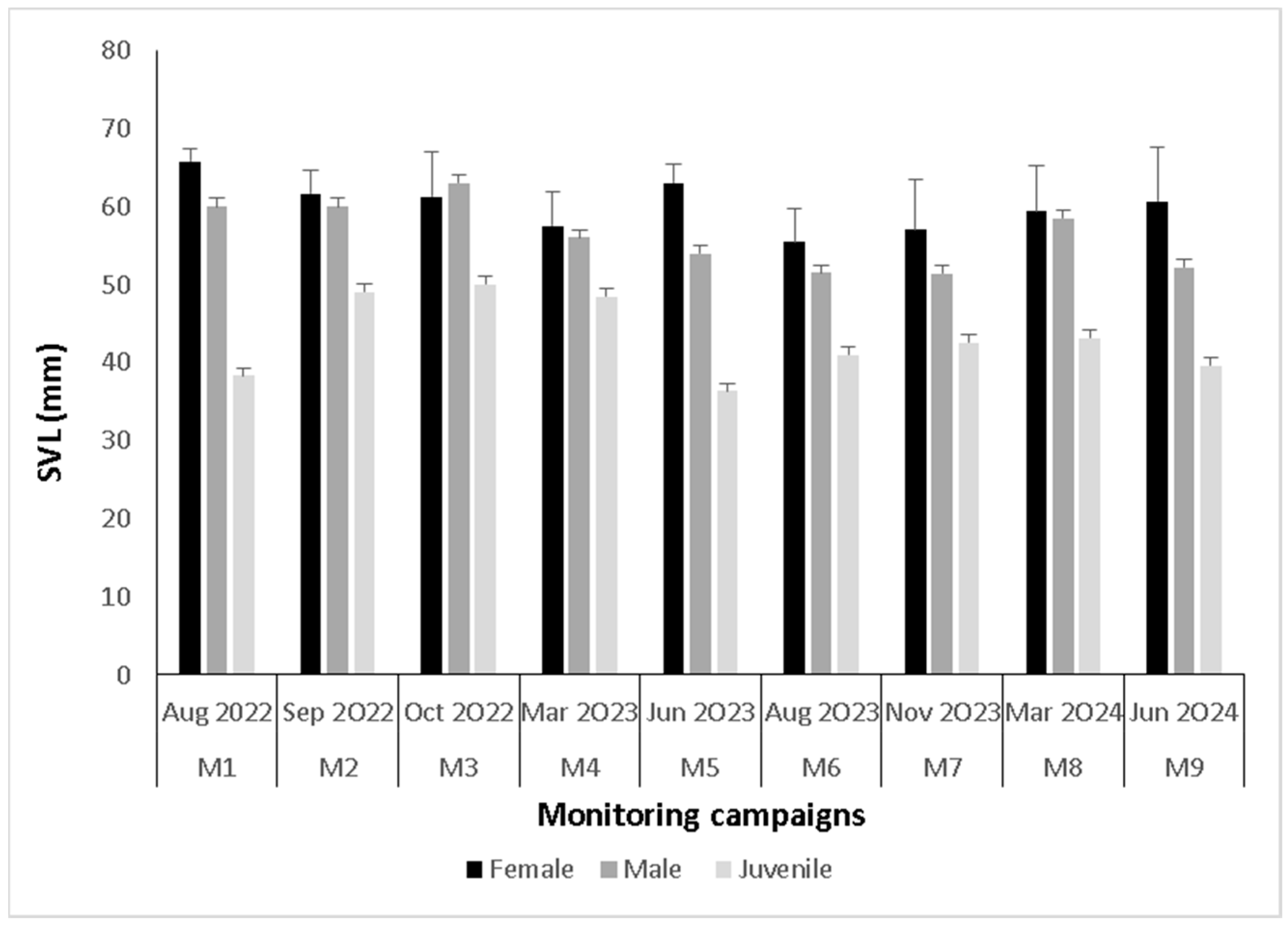 3.3. Population Aspects of Adults and Juveniles