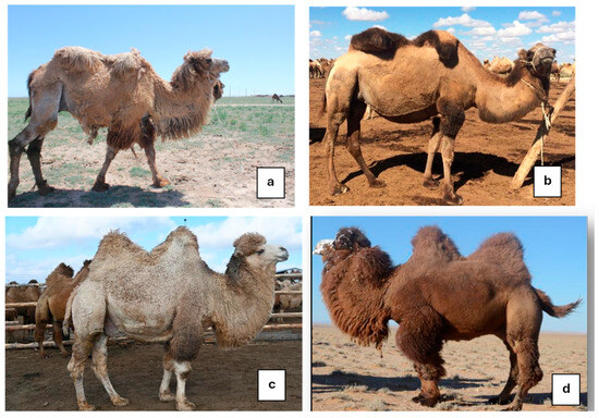 - Baimukanov, A. Two-humped camel. In Animal Genetic Resources of the USSR; Dmitriev, N.G., Ernst, L.K., Eds.; FAO animal production and health paper 65; FAO: Rome, Italy, 1989; Chapter 8; pp. 380–385. [Google Scholar]
