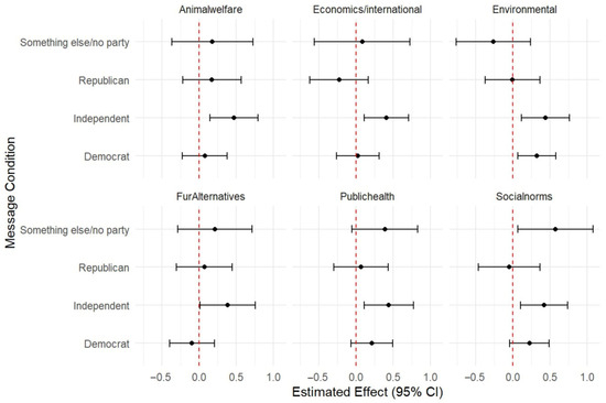 Leveraging perceptions of social norms is also critical: highlighting the widespread disapproval of fur could amplify stigma effects and accelerate the cultural shift away from fur use. Targeted outreach may be particularly effective with political independents, who demonstrated greater responsiveness to messaging. While none of our messages had a significant impact on a republican audience, moral foundations theory suggests that purity-focused framing may be most impactful for republican values [76]. Purity-focused framing demonstrating how fur farms act as both viral reservoirs and polluting facilities [63,64] could therefore potentially help move them towards supporting fur bans.