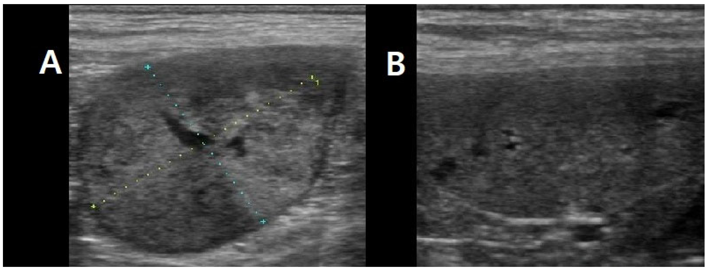 9/L). All other hematologic and biochemical parameters were within normal limits. Thoracic radiography and abdominal ultrasonography identified an uncharacterized left retroperitoneal mass measuring approximately 3 × 2 cm in diameter, in addition to a splenic mass (