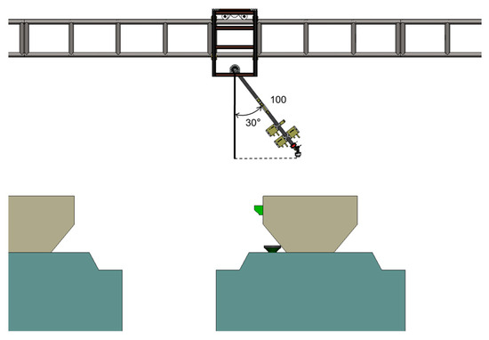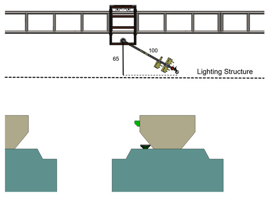 For lower-tier data collection, the Z-axis remains vertical to the ground, and thus no control pulses or digital triggers are sent. Whereas when imaging upper cages, the Z-axis arm rotates to an angle of 30°, shown in Figure 14, extending the effective arm length to approximately 86.6 cm. This relative position ensures that the camera is approximately 38.4 cm above the cage, satisfying the imaging distance requirements.