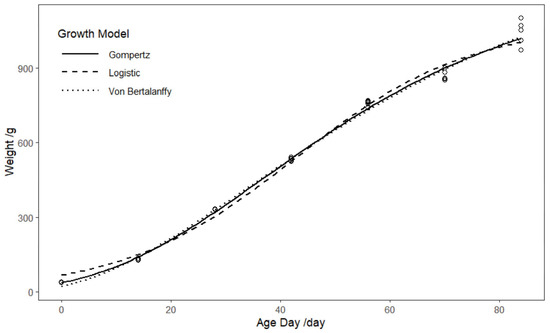 - Kühleitner, M.; Brunner, N.; Nowak, W.-G.; Renner-Martin, K.; Scheicher, K. Best-Fitting Growth Curves of the von Bertalanffy-Pütter Type. Poult. Sci. 2019, 98, 3587–3592. [Google Scholar] [CrossRef]