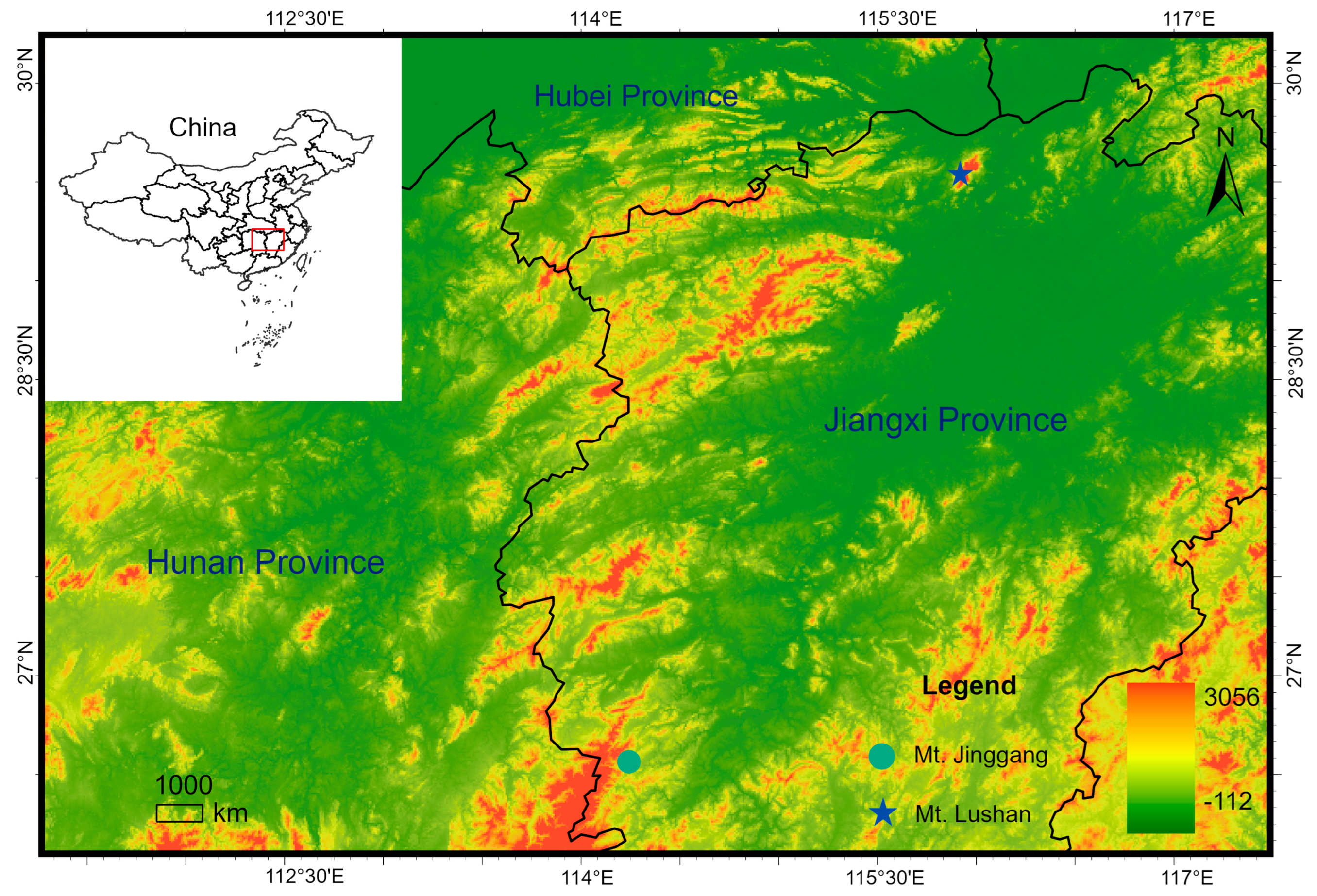 Sampling and recording localities of Boulenophrys lushanensis sp. nov. from Mount Lushan, Lushan City, Jiangxi Province, China, and B. jinggangensis from Mount Jinggang, Jinggangshan City, Jiangxi Province, China.